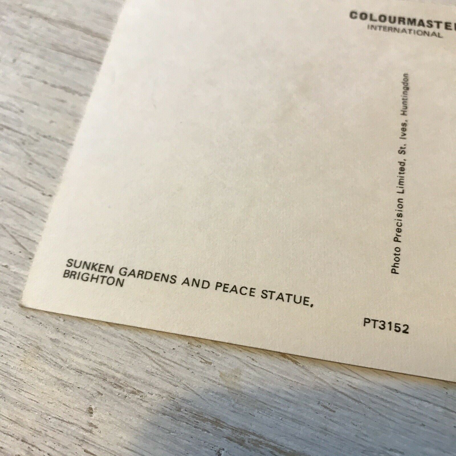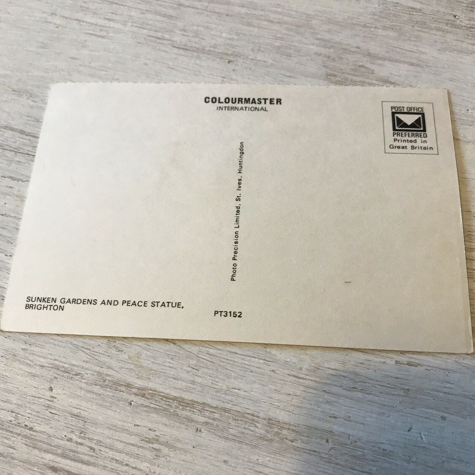 Vintage Postcard ENGLAND - Brighton - Bright Colours Sunken Gardens & Peace Statue Brighton Flowers