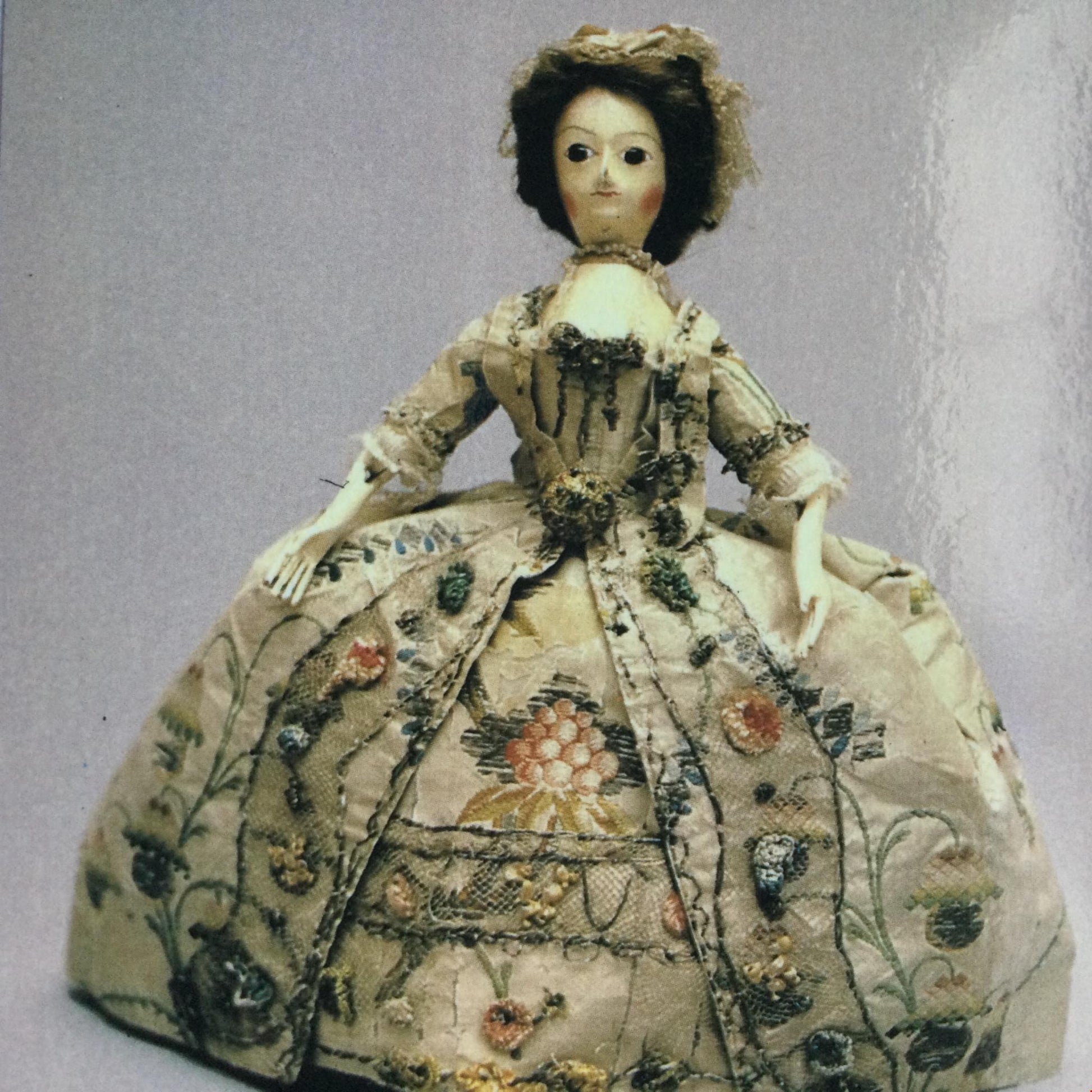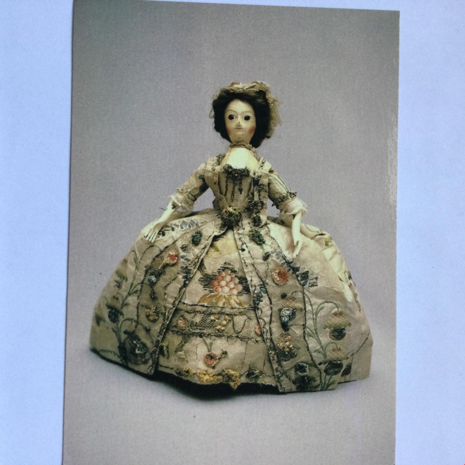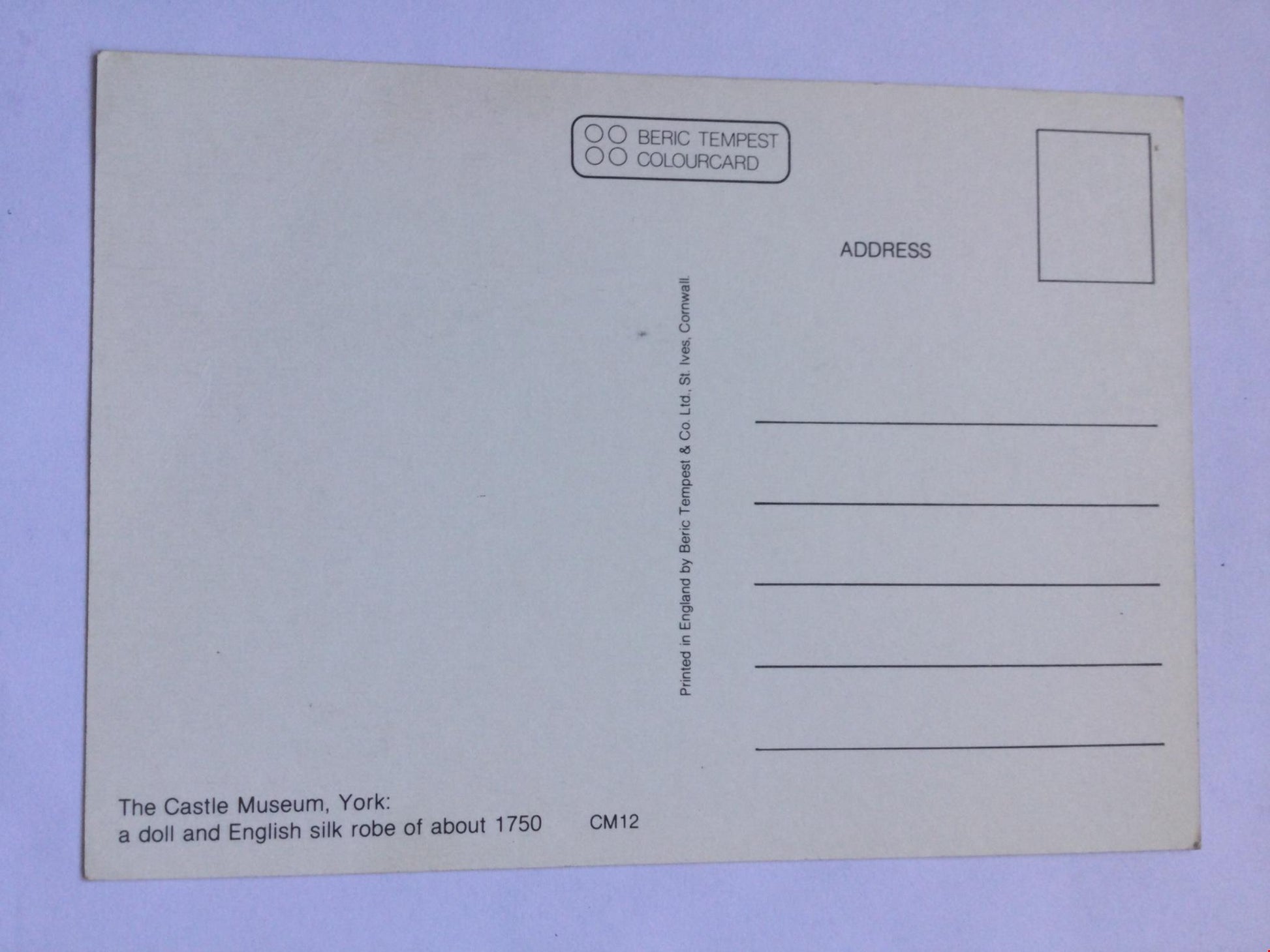 OLD POSTCARD OF CHINA DOLL FROM 1750 ENGLISH SILK ROBE CASTLE MUSEUM YORK