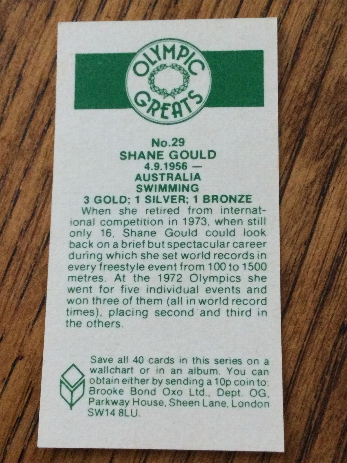 OLYMPICS DAWN FRASER Brooke Bond Tea Card Olympic Greats #28 AUSTRALIA SWIMMING