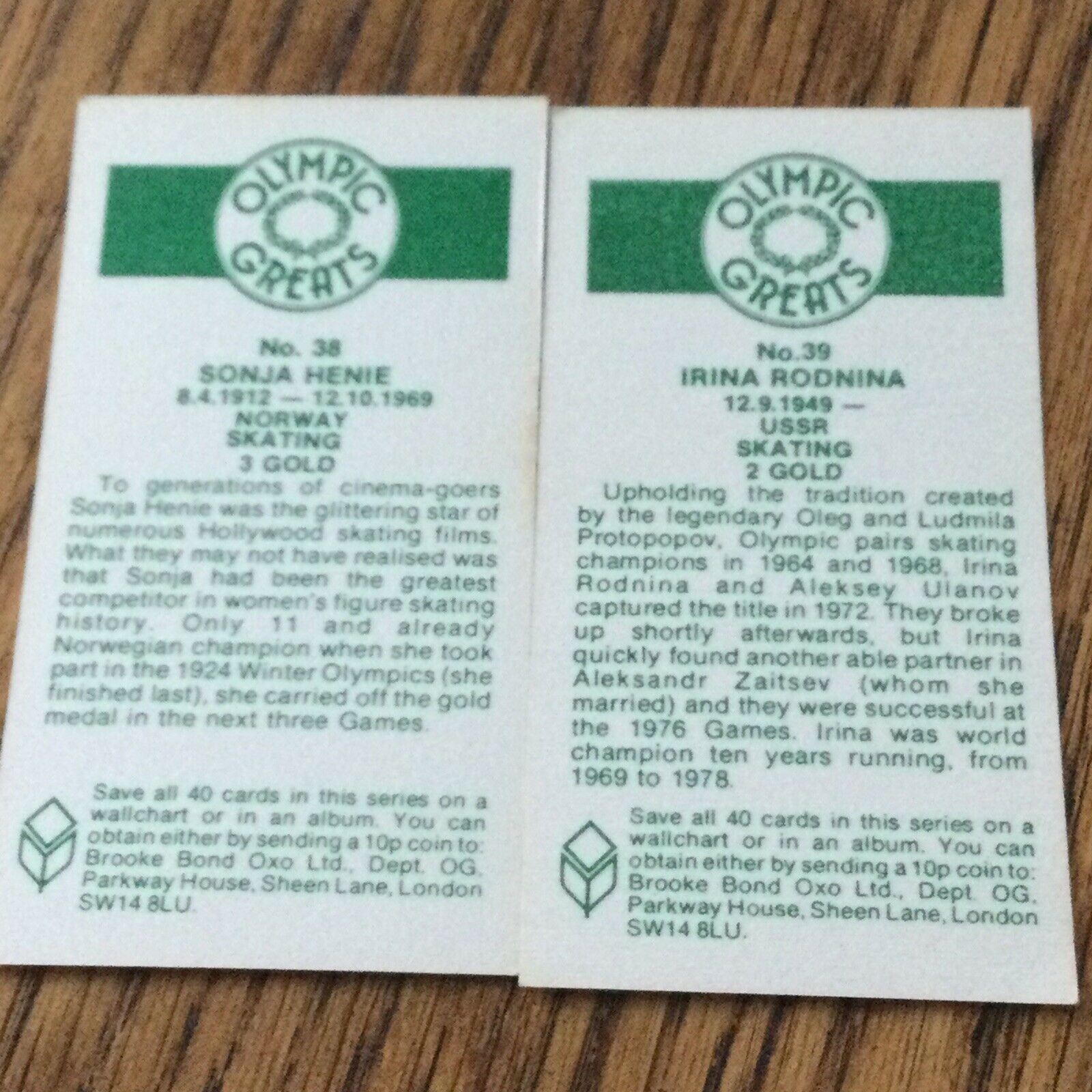OLYMPICS SKATING GOLD MEDALISTS Brooke Bond Tea Cards Olympic Greats #38 #39