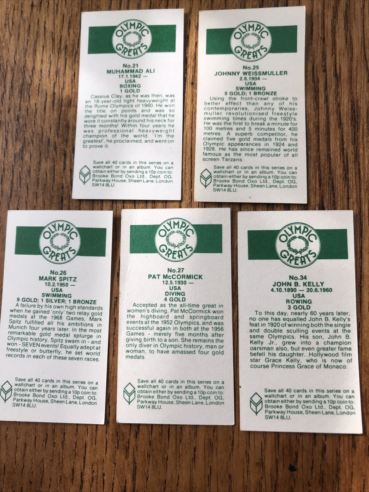 OLYMPICS USA Brooke Bond Tea Cards Olympic Greats #21 25 26 27 34 Muhammad Ali