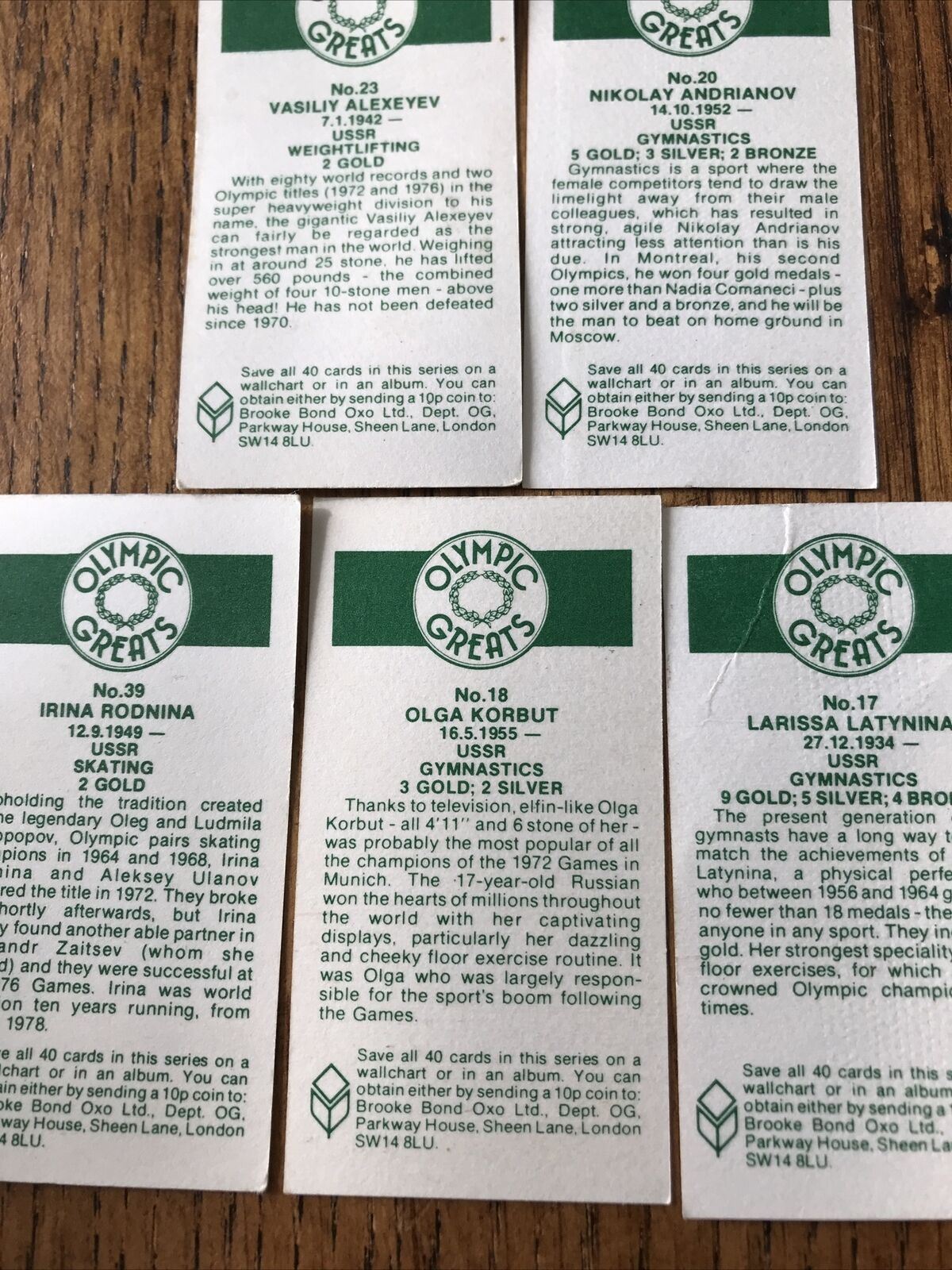 OLYMPICS USSR Brooke Bond Tea Cards Olympic Greats #17 18 20 23 39 OLGA KORBUT