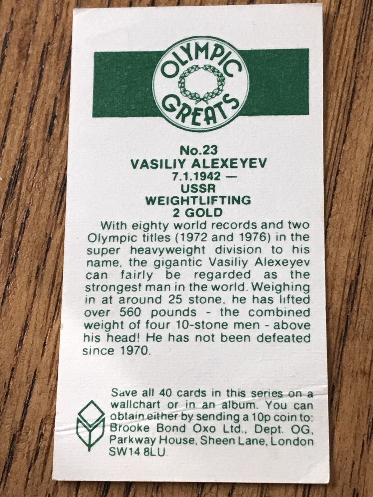 OLYMPICS VASILIY ALEXEYEV Brooke Bond Tea Card Olympic Greats #23 Weightlifting