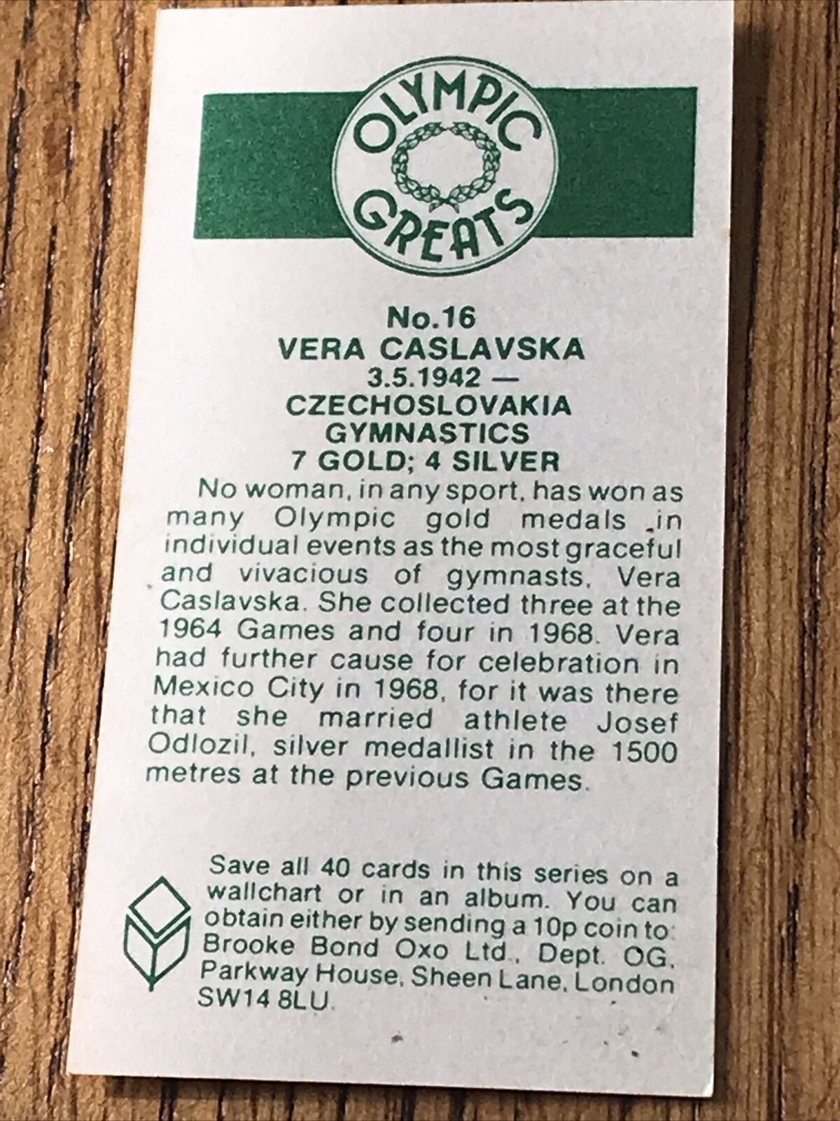 OLYMPICS VERA CASLAVSKA Brooke Bond Tea Card Olympic Greats #16 1964 1968 Gymnas
