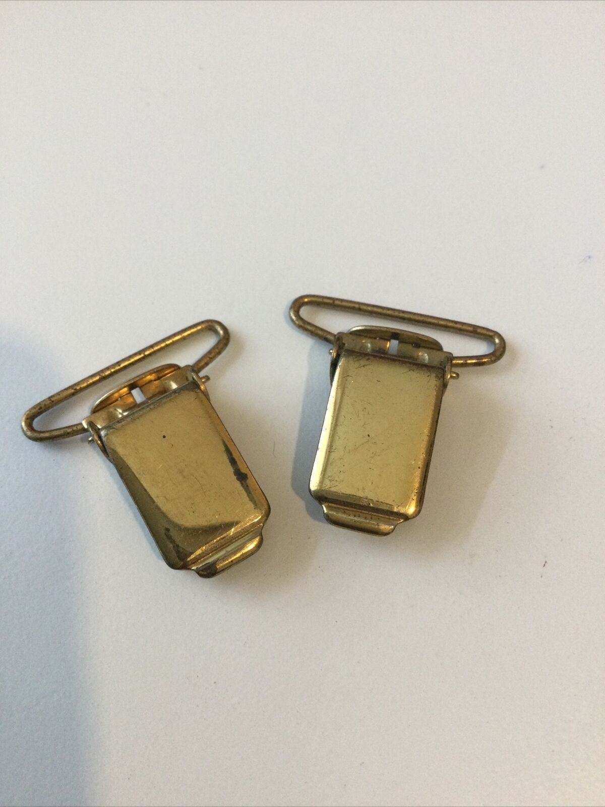 Pair Of Vintage Gold Tone Brace Buckles. In Working Order.. Condition is "Used". Dispatched with Royal Mail 2nd Class.