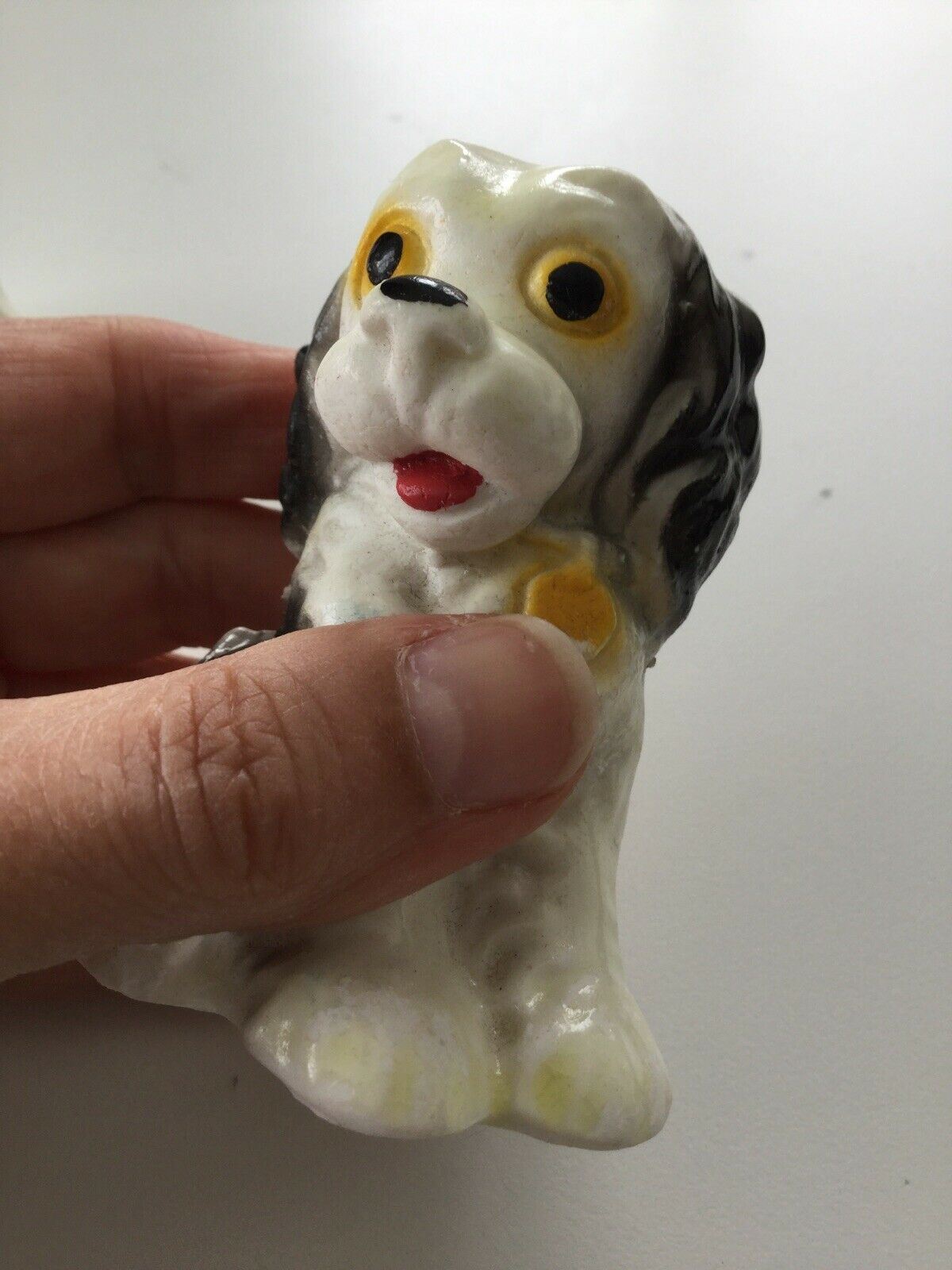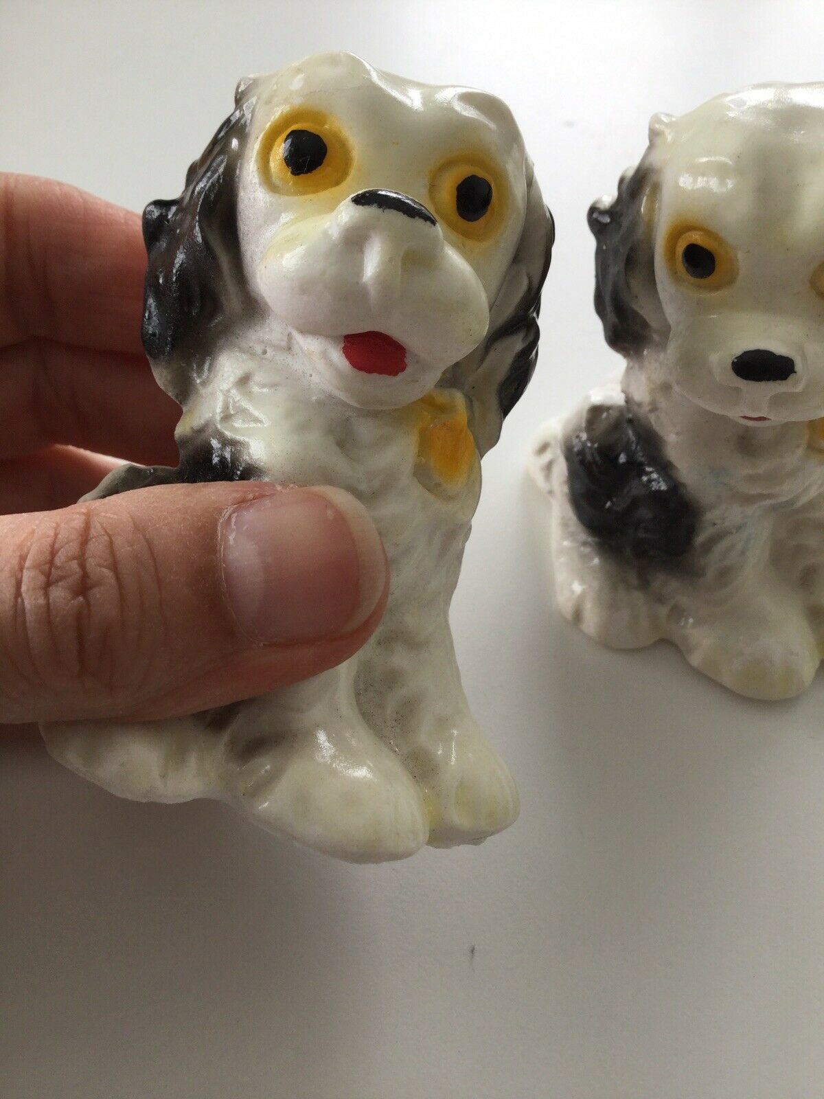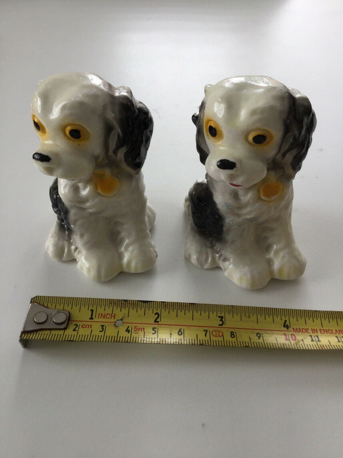 Pair Of Vintage Spaniel Dog Ornaments. Black And White. Ceramic. 1960s?. Condition is Used. Dispatched with Royal Mail