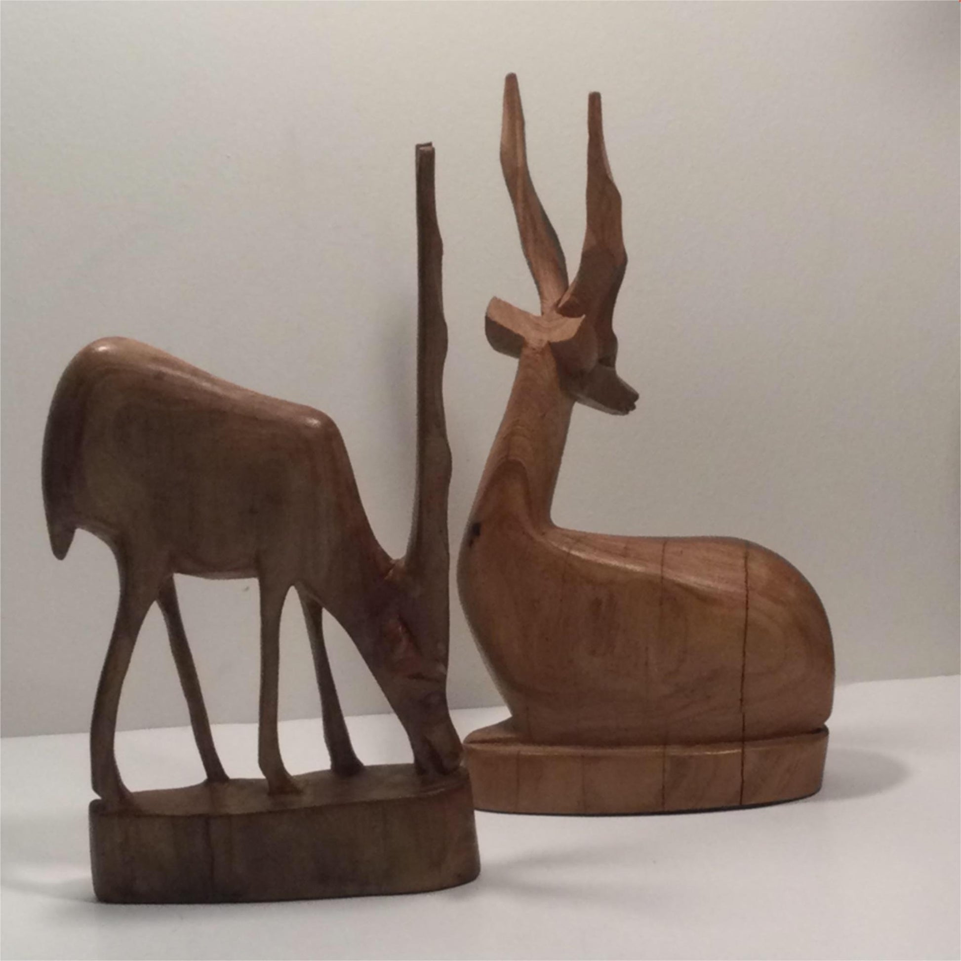 Pair of Wooden Carved Antelopes / Gazelles - African 50s 60s 70s - Some splits in wood