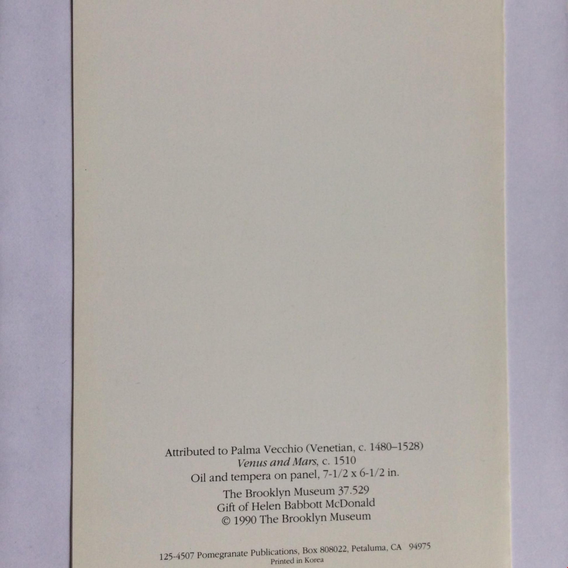 PALMA VECCHIO VENUS AND MARS c1510 Brooklyn Museum Blank Card, No Envelope