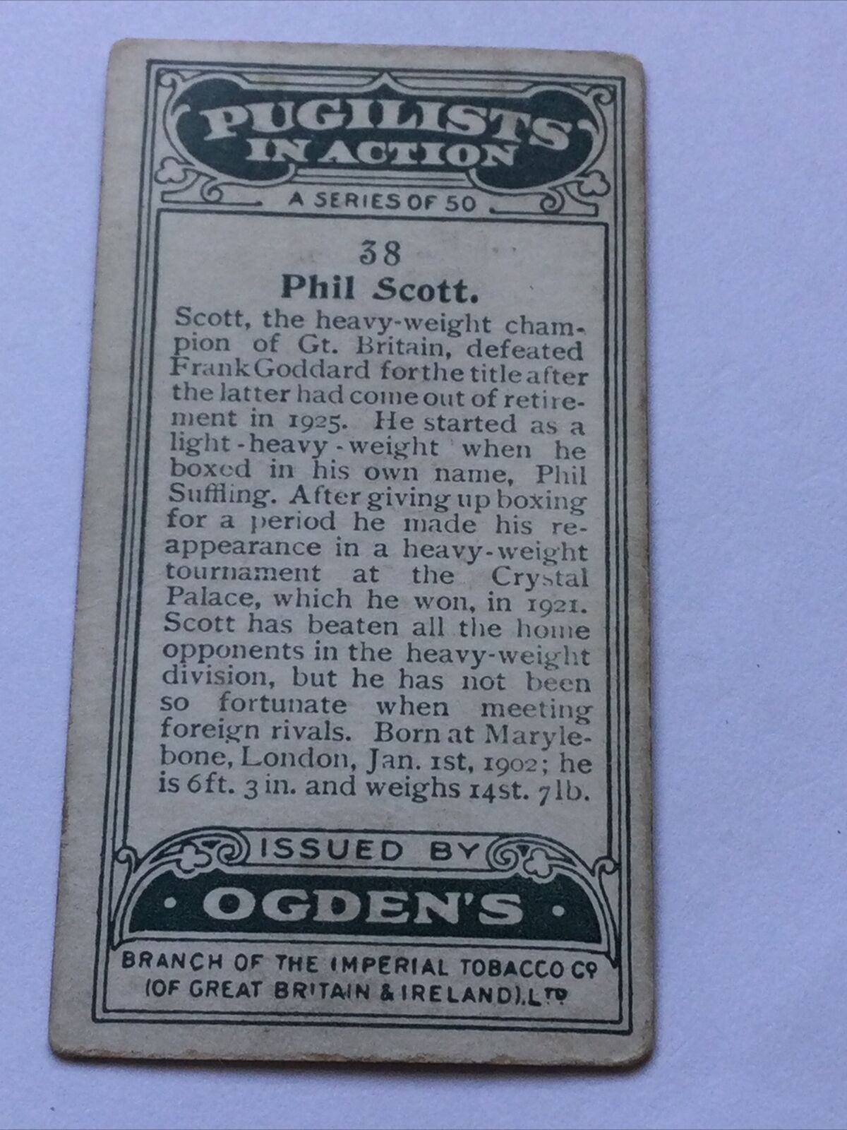 PHIL SCOTT VINTAGE CIGARETTE CARD Ogden’s PUGILISTS IN ACTION #38 1920s Boxing