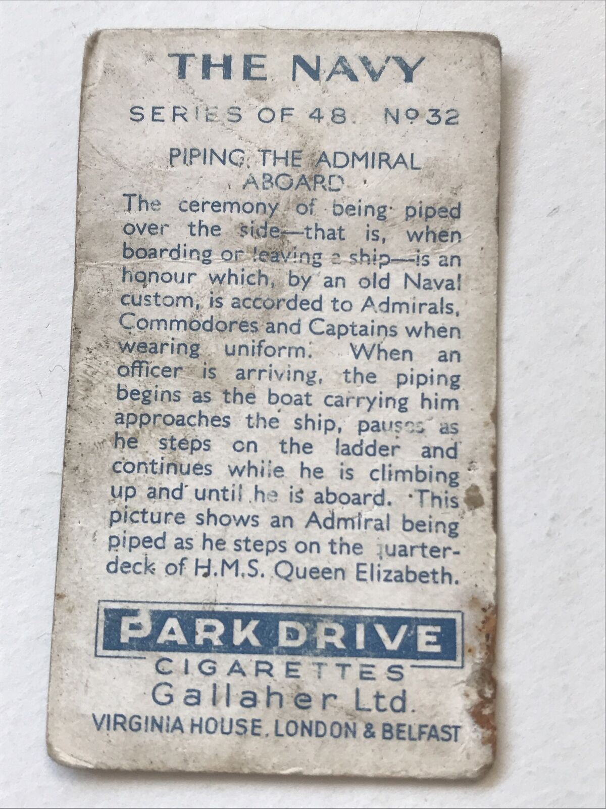 Park Drive Cigarette Card The Navy