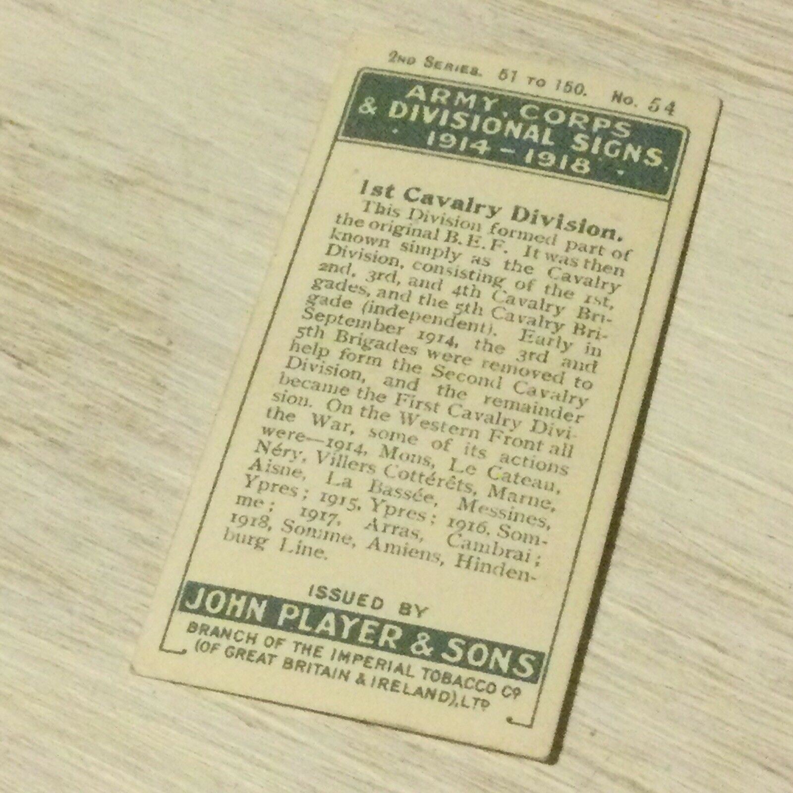 Players Cigarette Card - Army Corps & Divisional Signs 1914-1918 - No. 54 1st Cavalry Division
