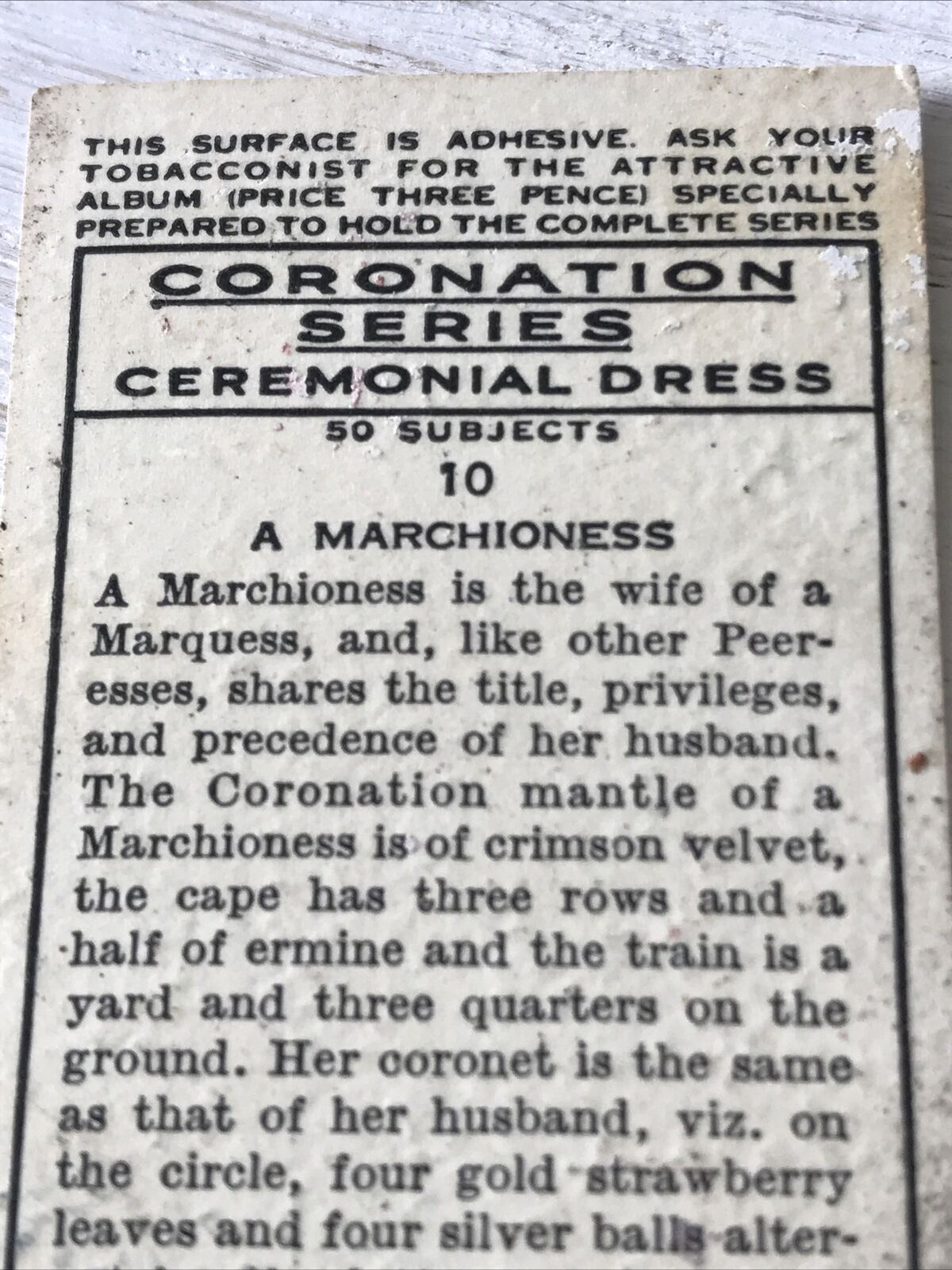 Players Cigarette Card Coronation Series Ceremonial Dress 10 Marchioness British