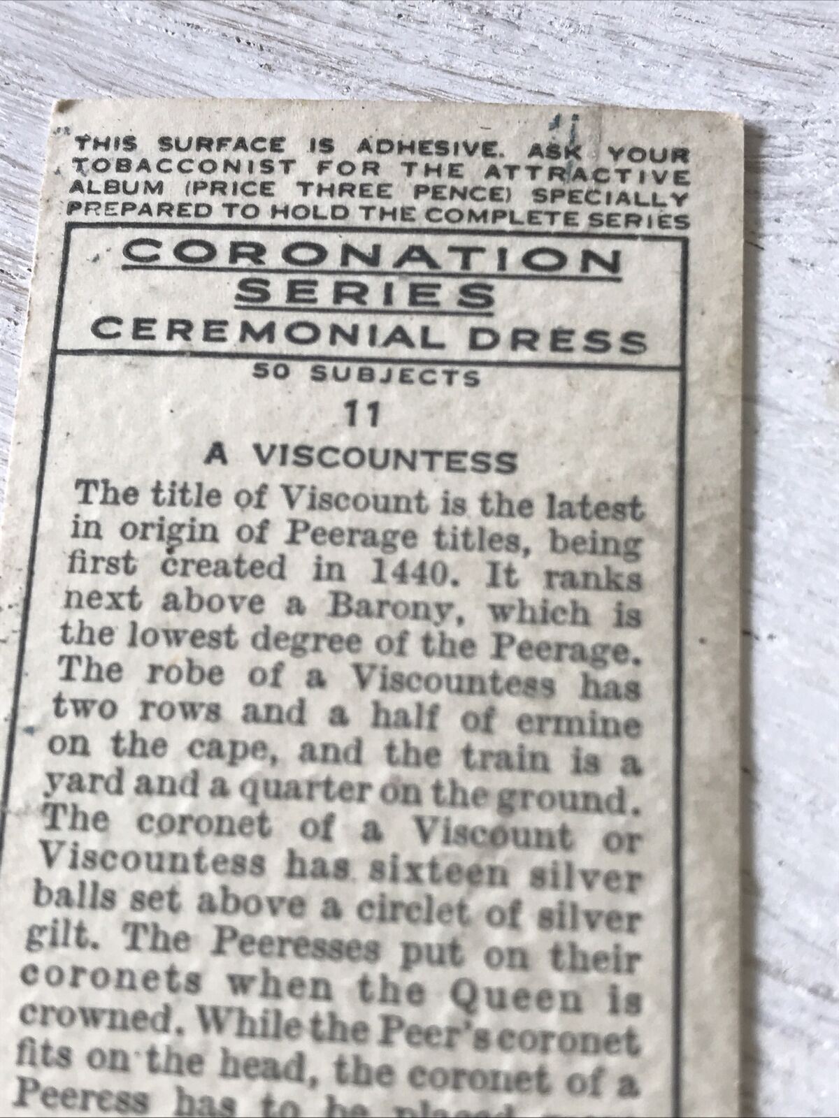 Players Cigarette Card Coronation Series Ceremonial Dress 11 Viscountess British. 1937 1930s