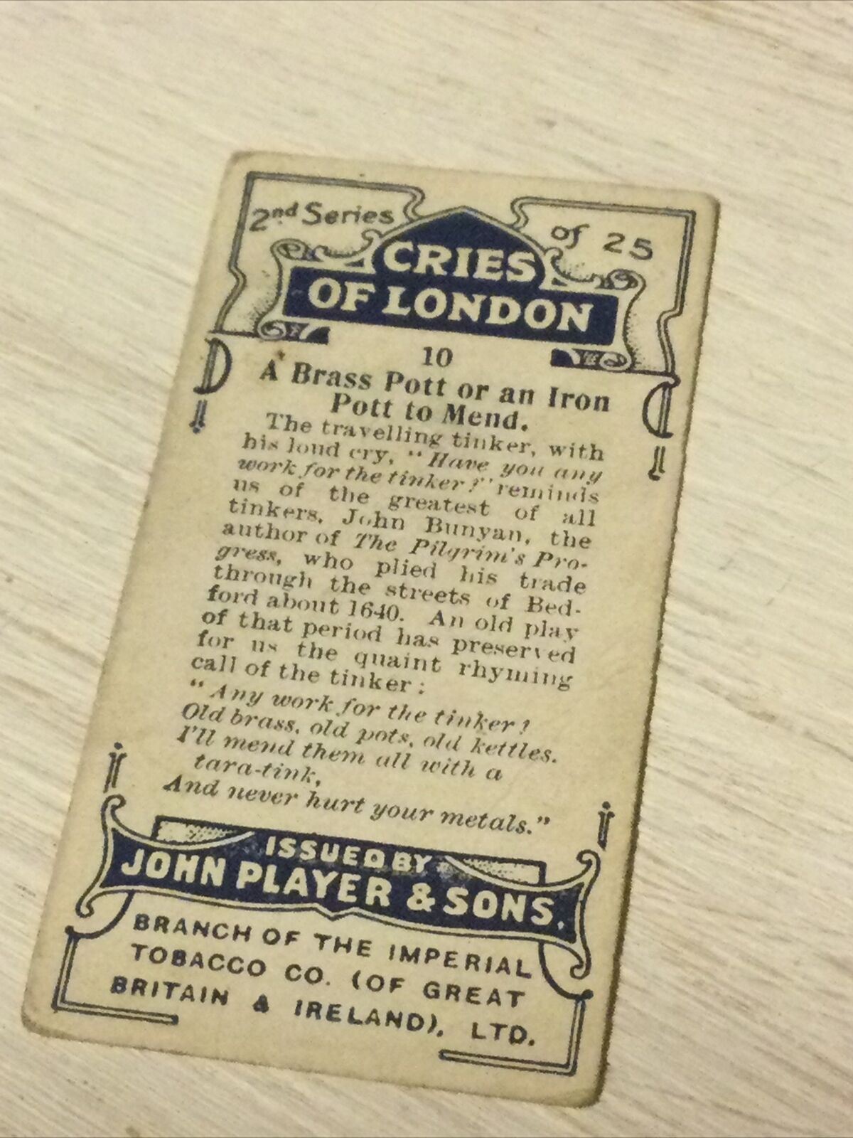 Players Cigarette Card Cries Of London Series 2 No 10 A Brass Pott Or An Iron