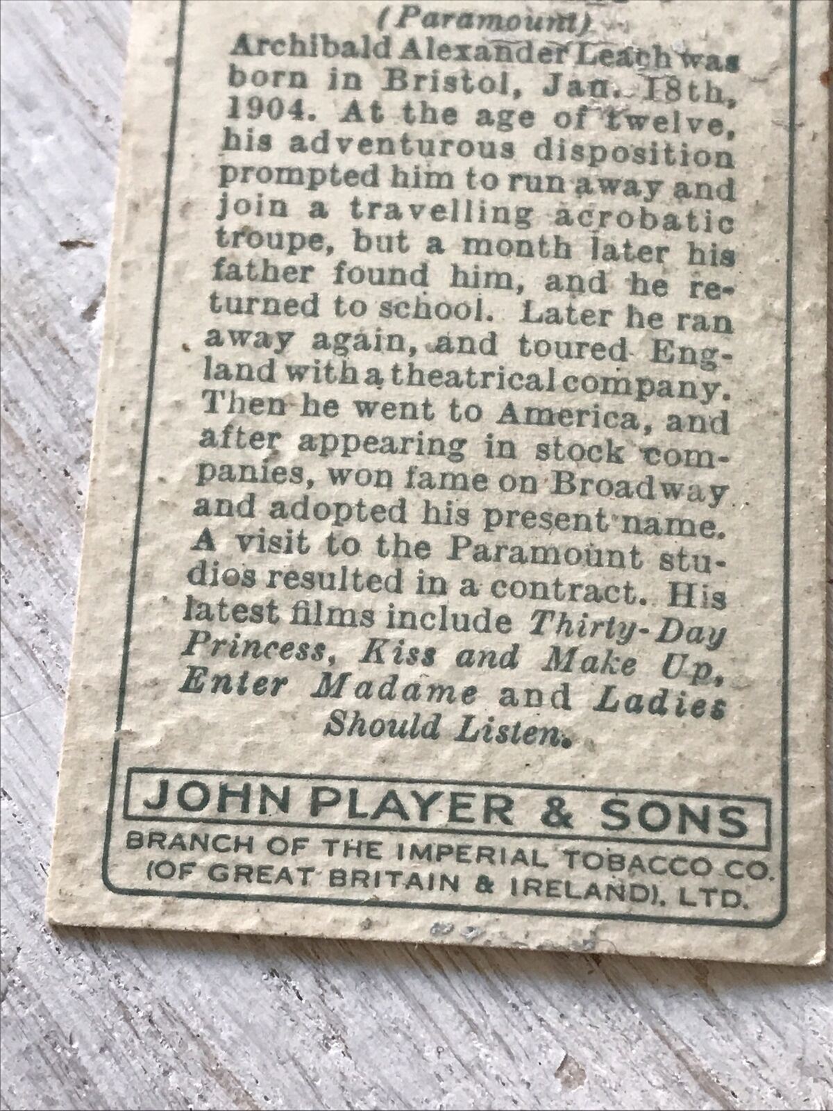 Players Cigarette Card Film Stars 2nd Series 22 Cary Grant Hollywood Actors