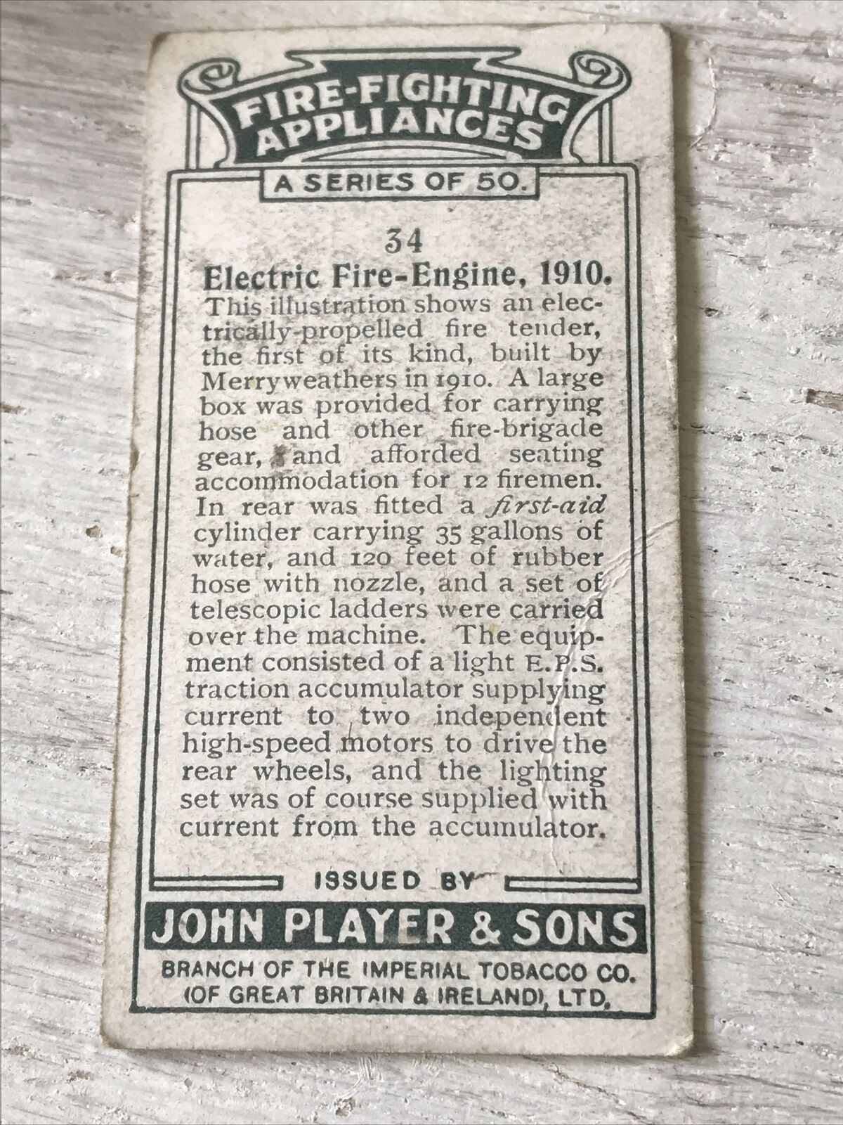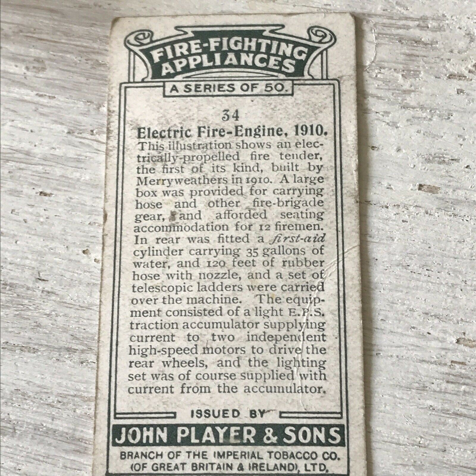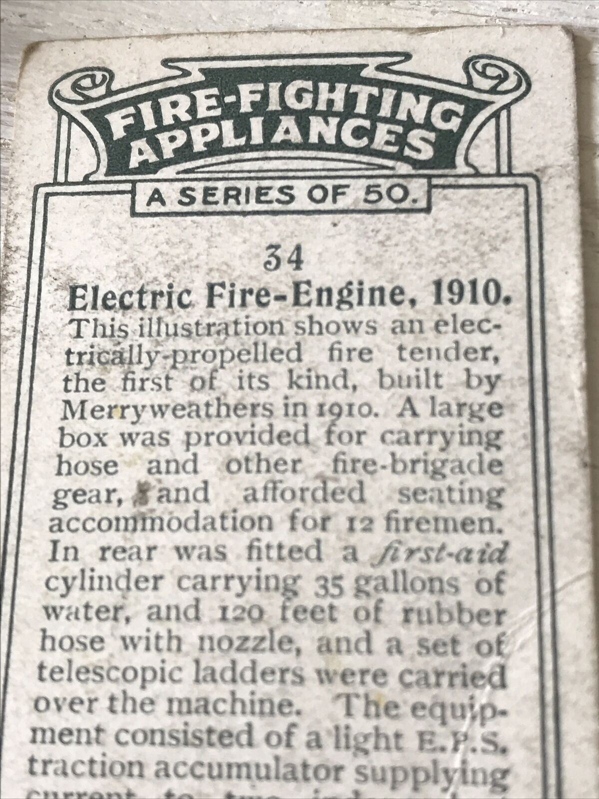 Players Cigarette Card - Fire Fighting Appliances - No 34 Electric Fire Engine 1910