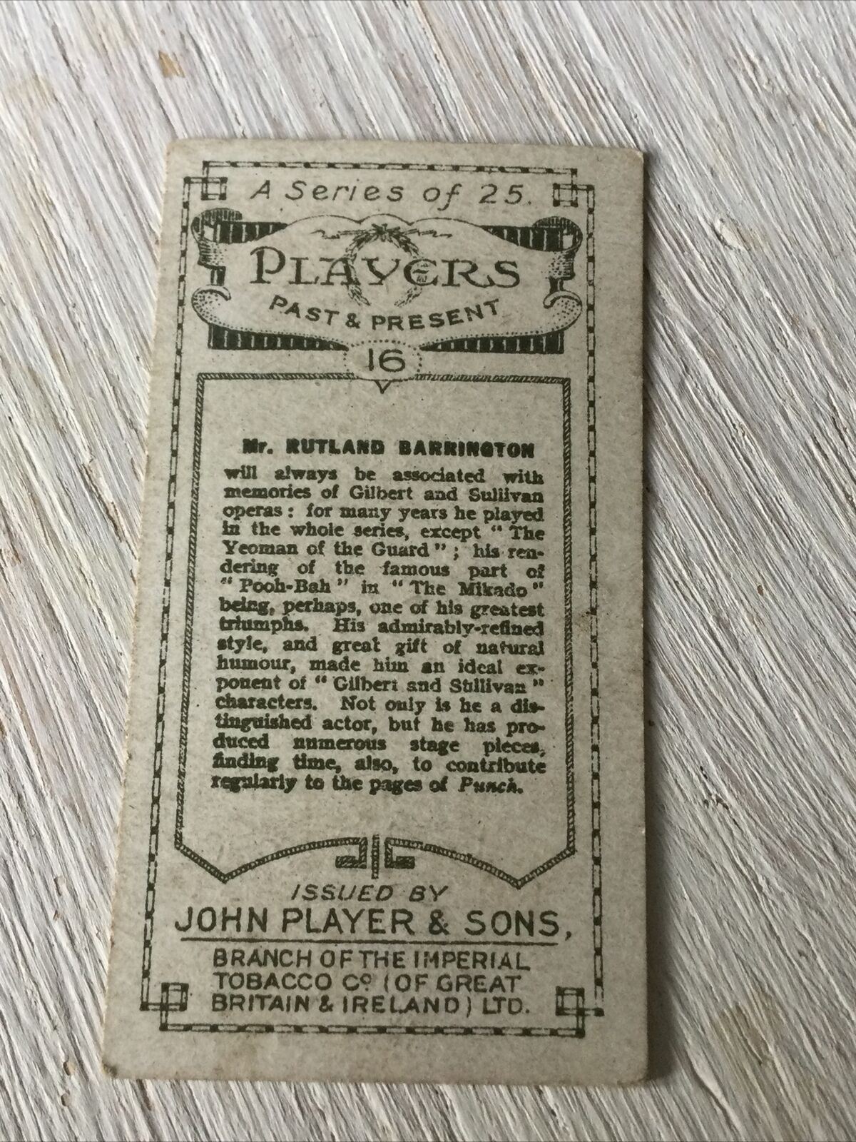 PLAYER'S Cigarette Card Past & Present. 16. Mr Rutland Barrington, Pooh Bah, Mik