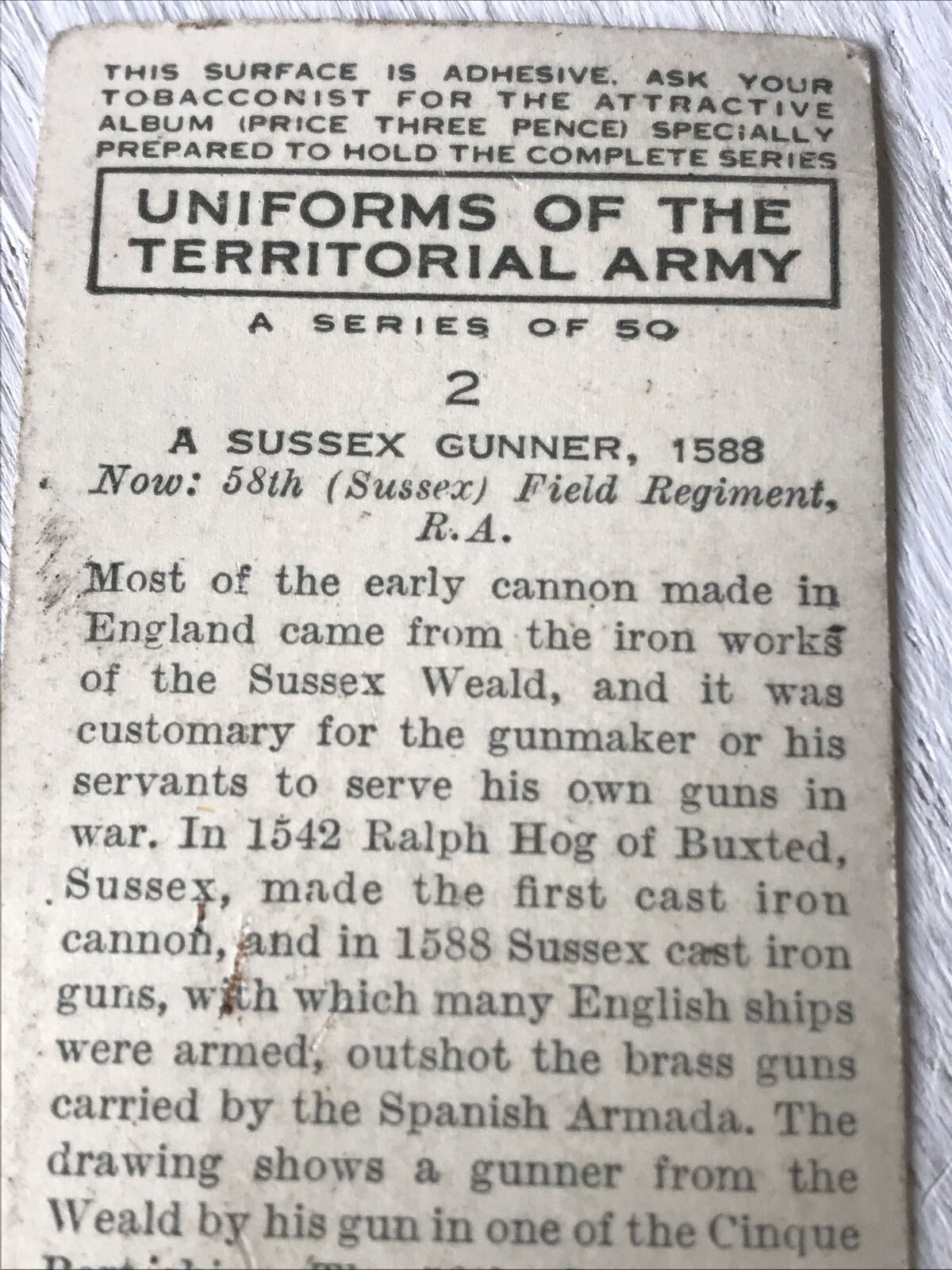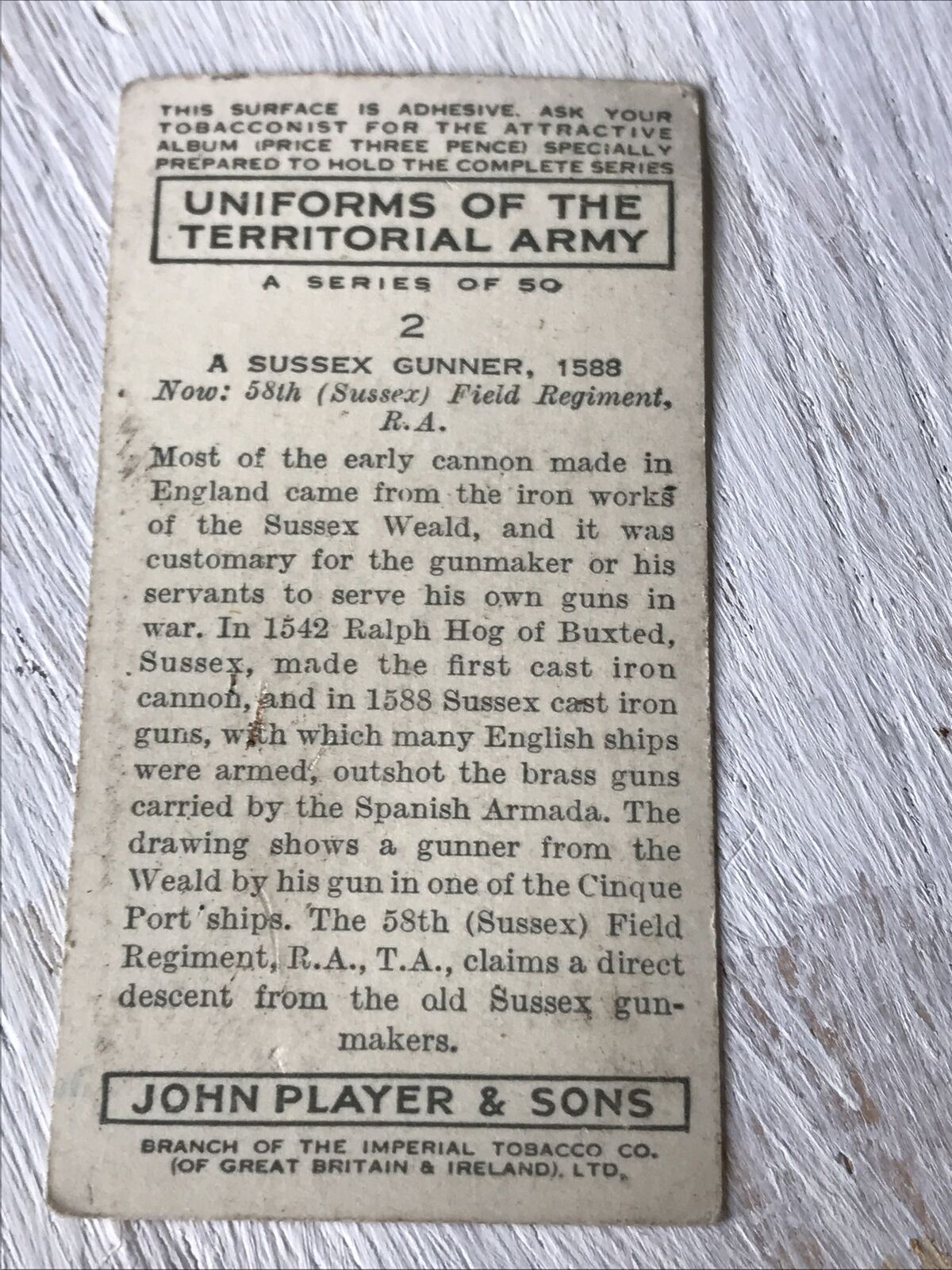 Players Cigarette Card - Uniforms Of The Territorial Army - No. 2 Sussex Gunner 1588