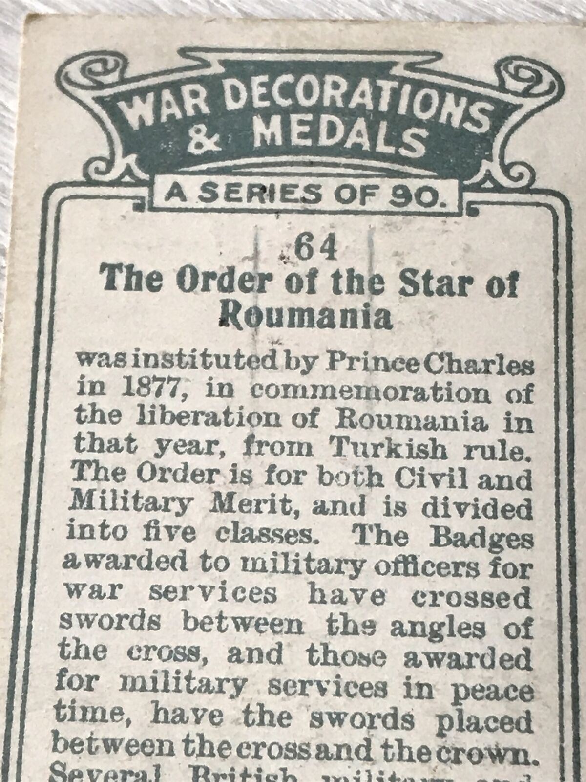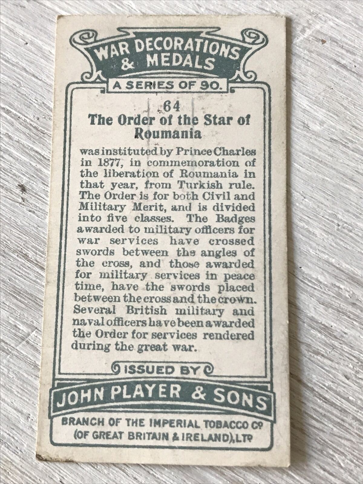 Players Cigarette Card - War Decorations & Medals - No. 64 Order Of Star Of Roumania