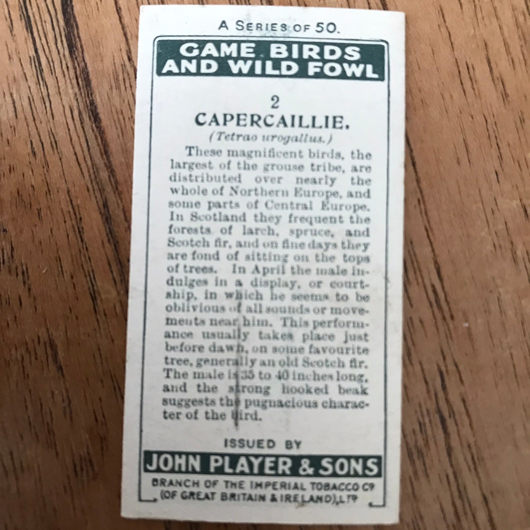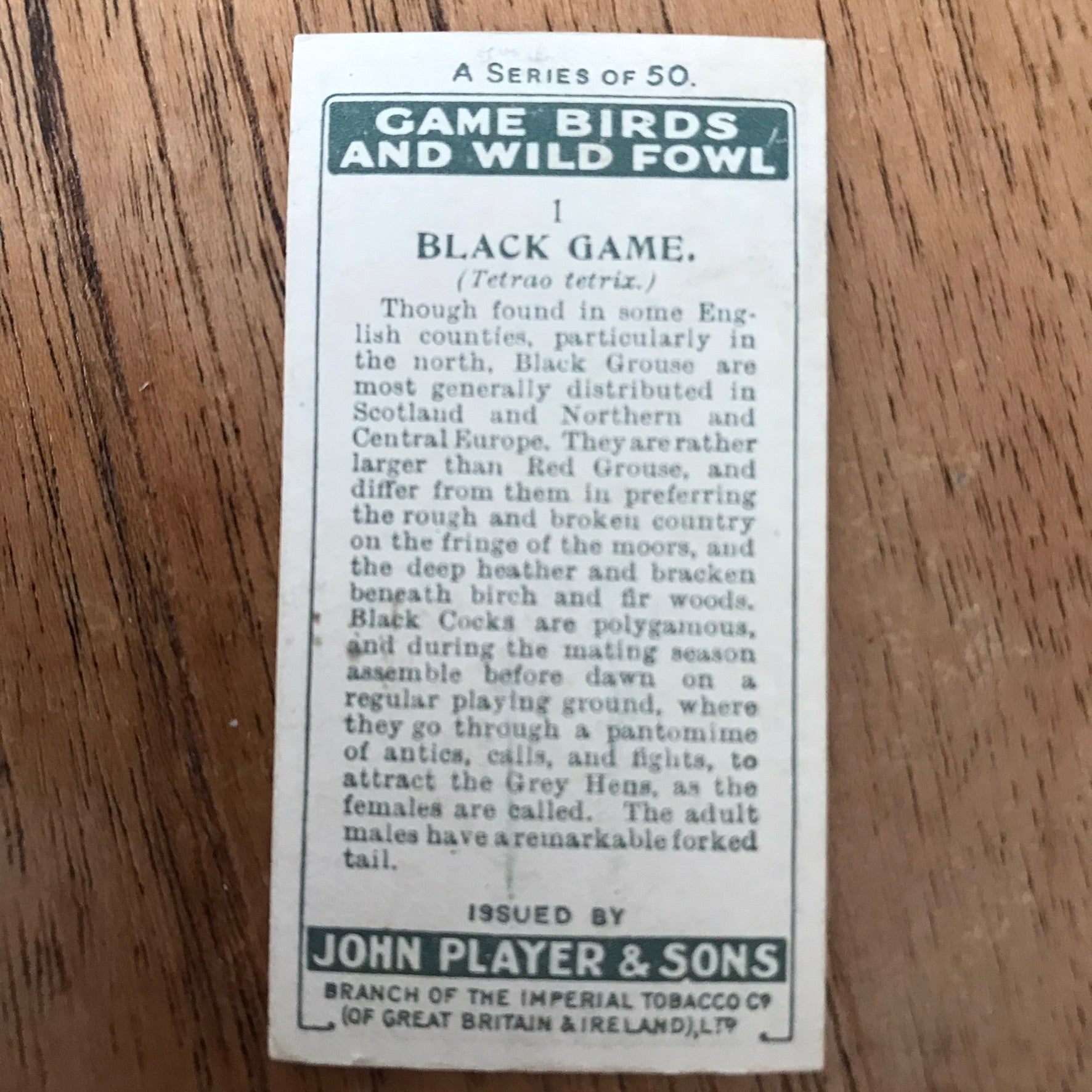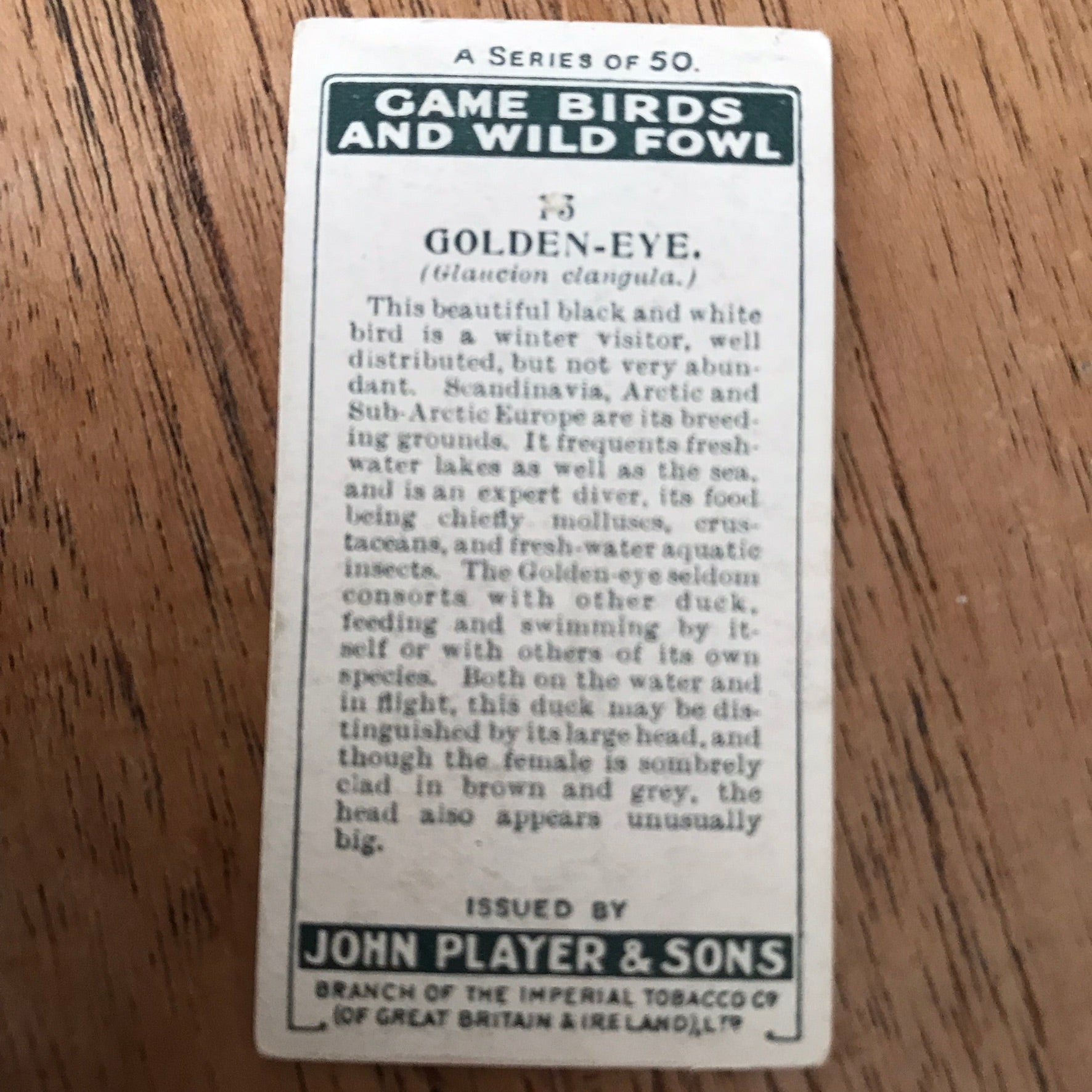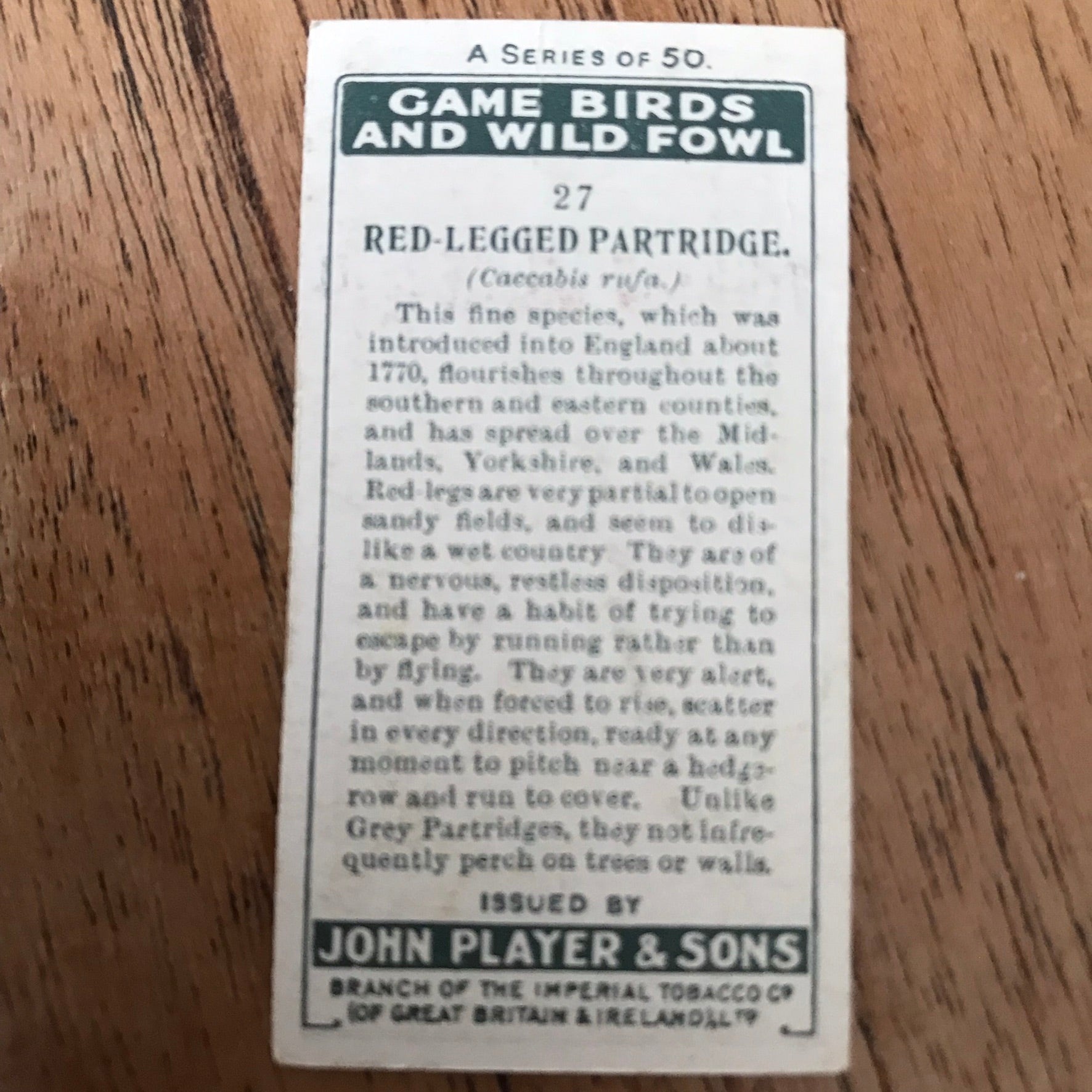 The Game Birds & Wild Fowl series from 1927 features beautifully illustrated cards showcasing various bird species.