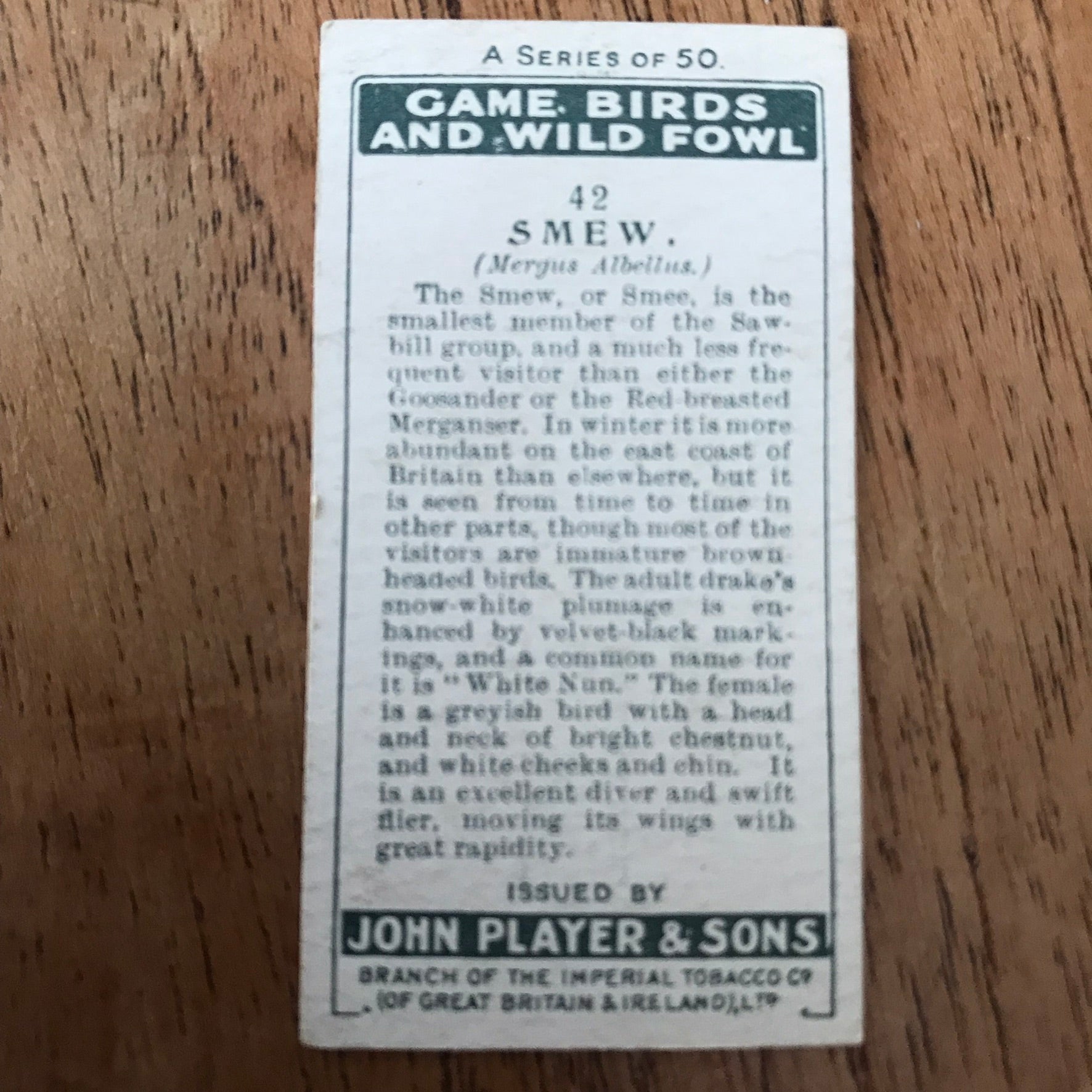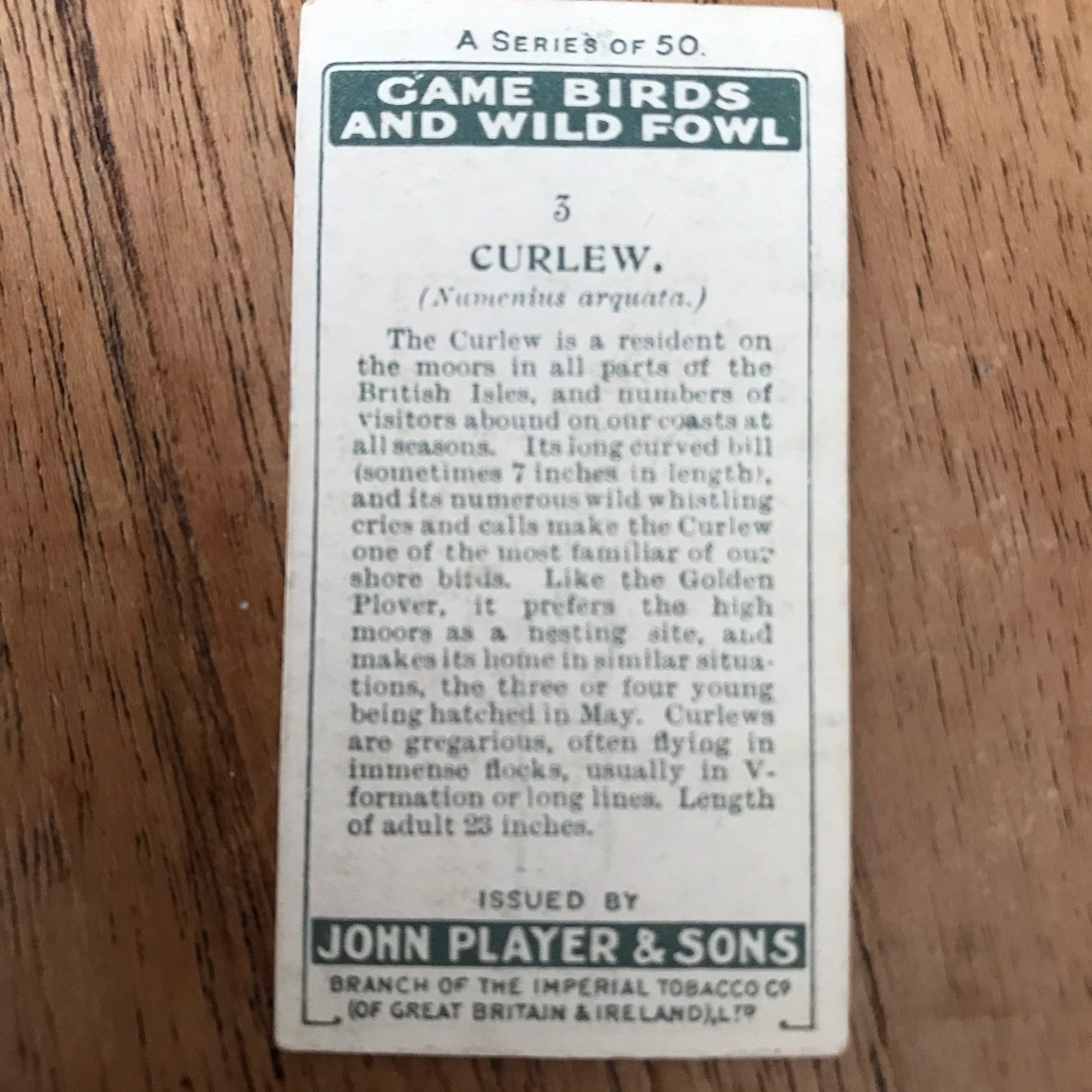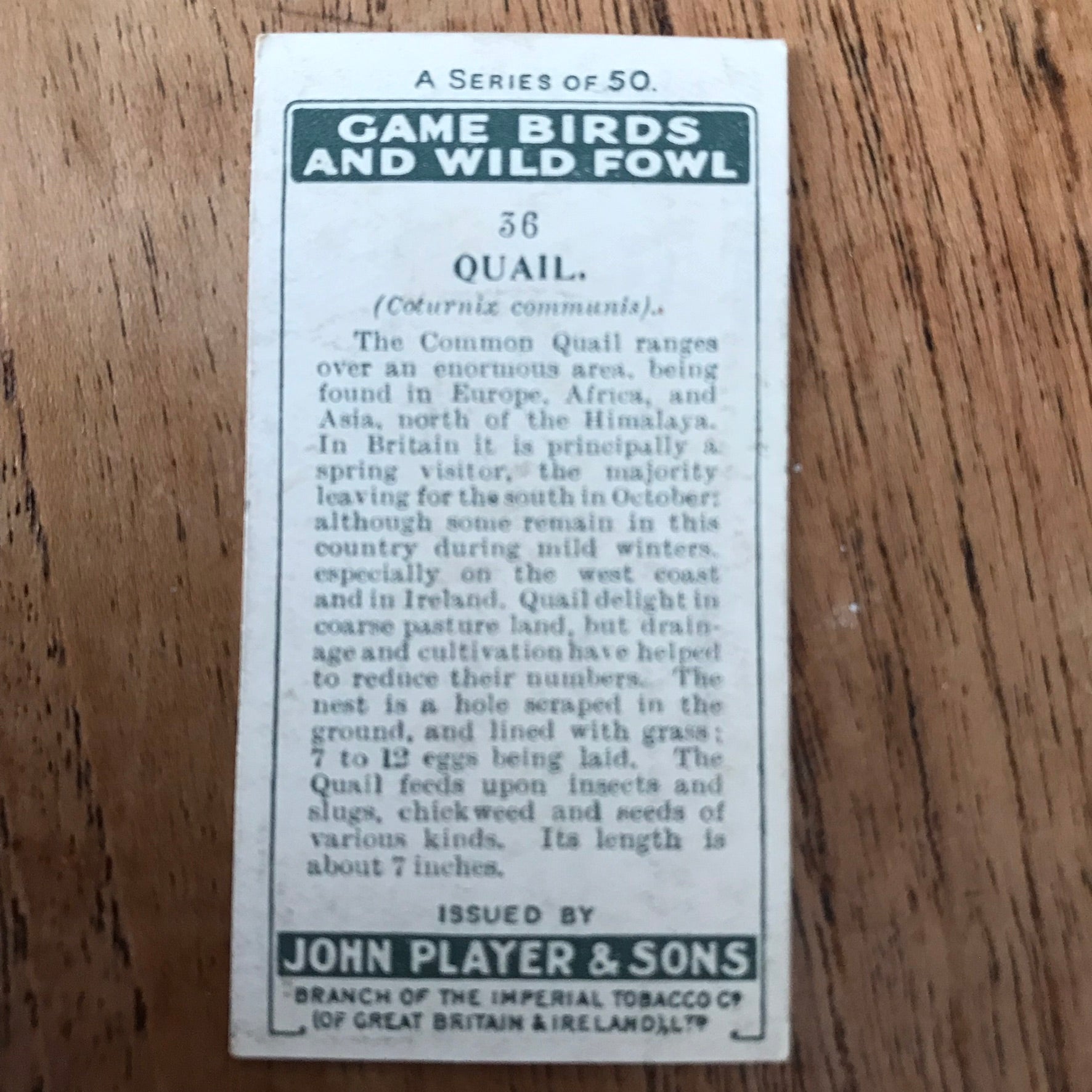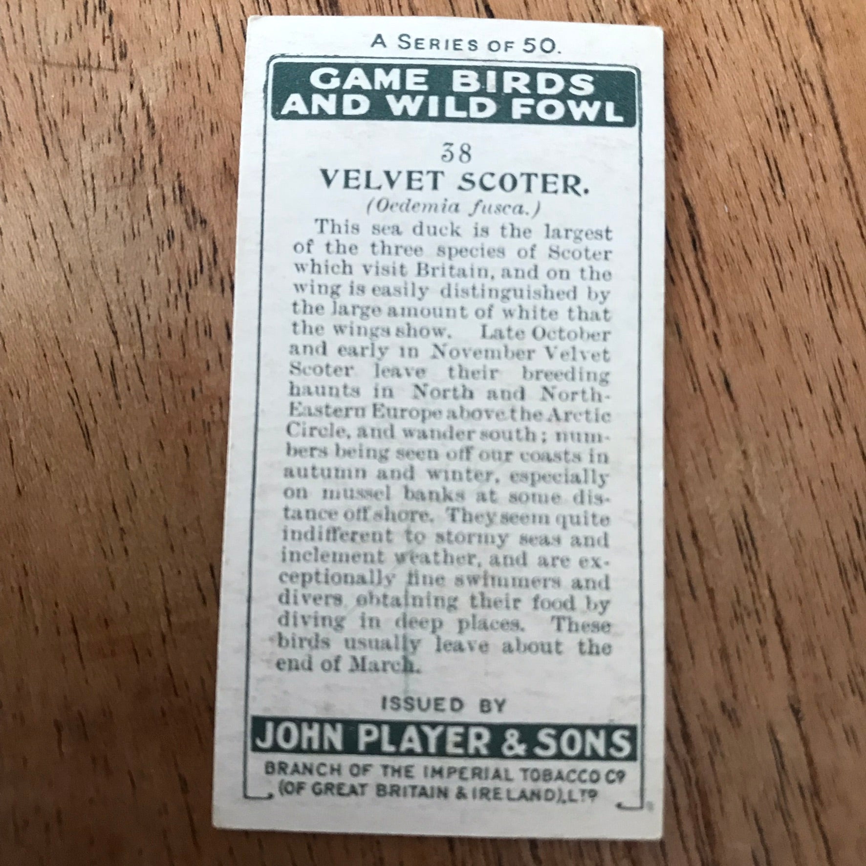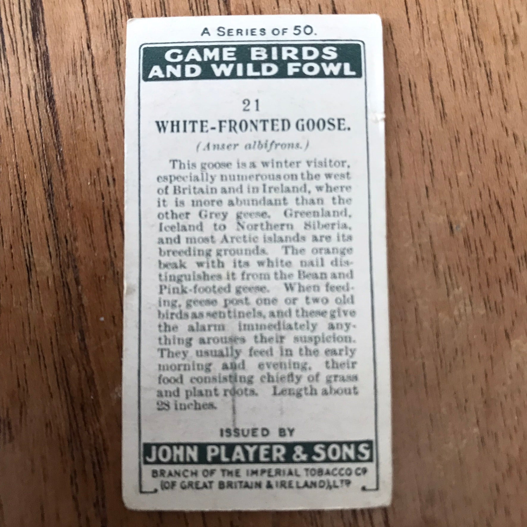 The Game Birds & Wild Fowl series from 1927 features beautifully illustrated cards showcasing various bird species.