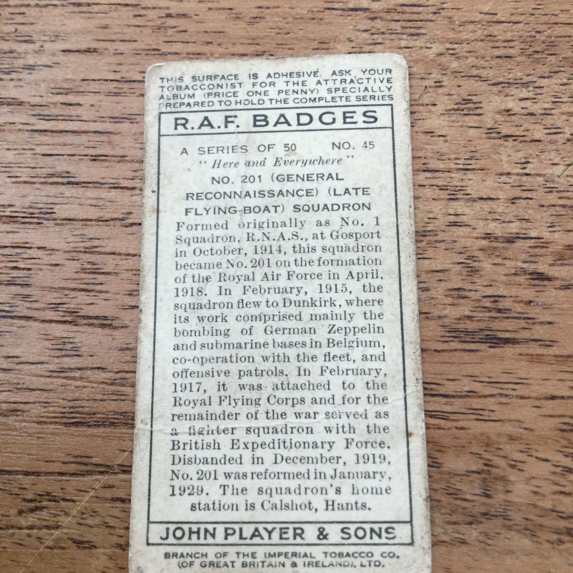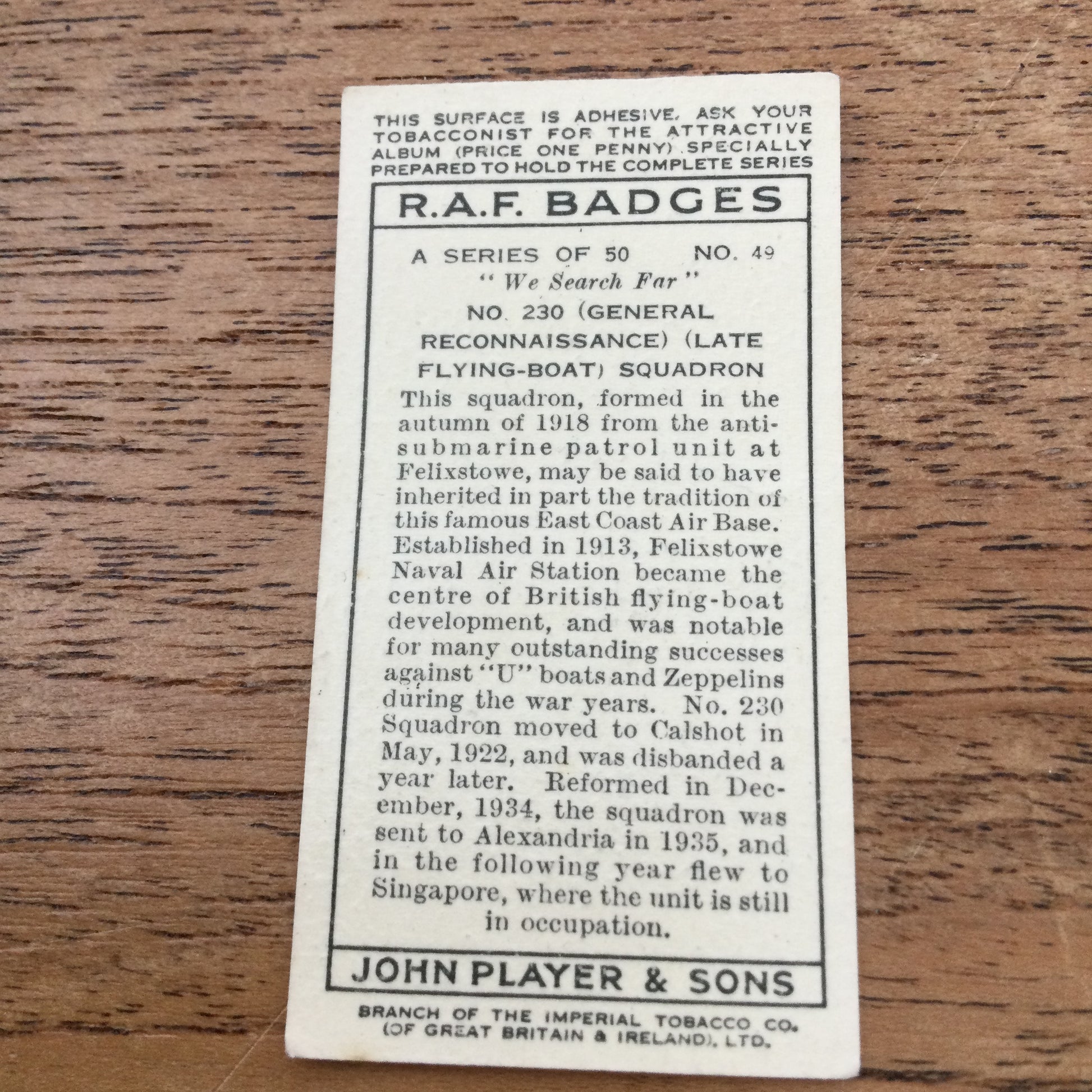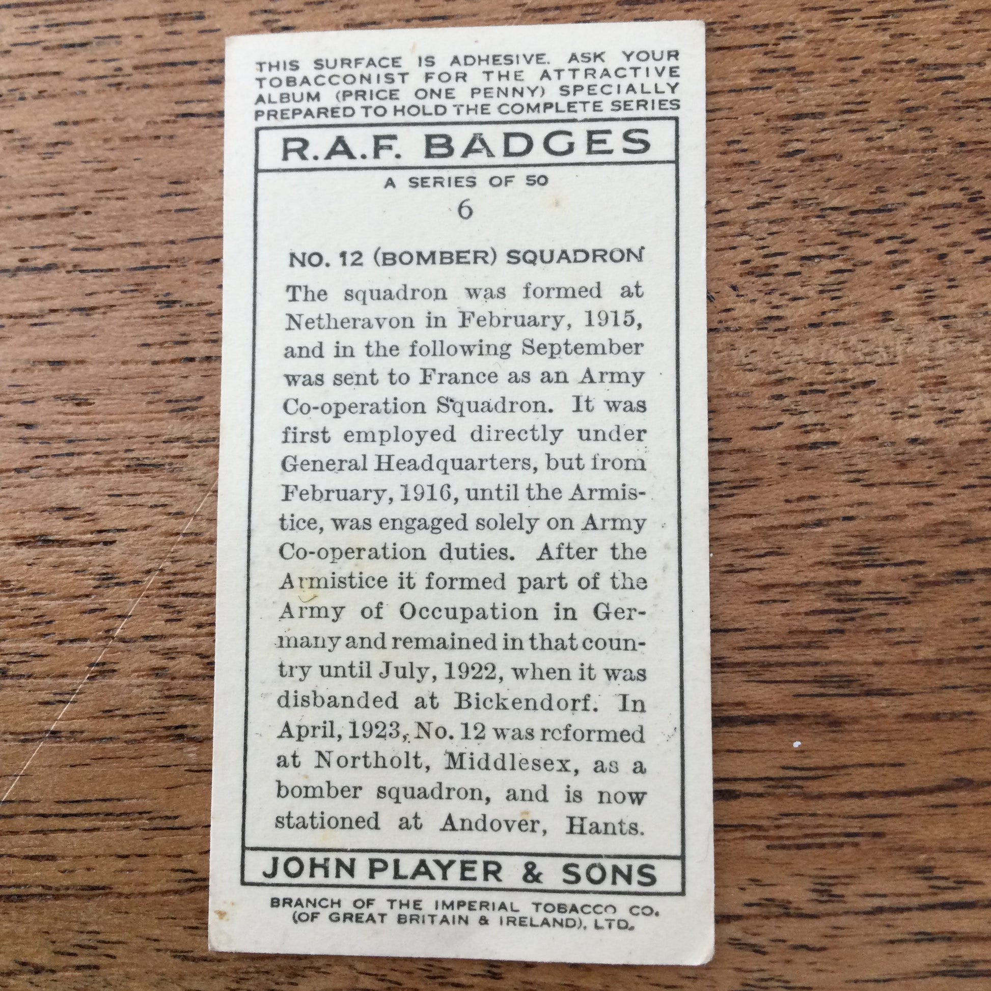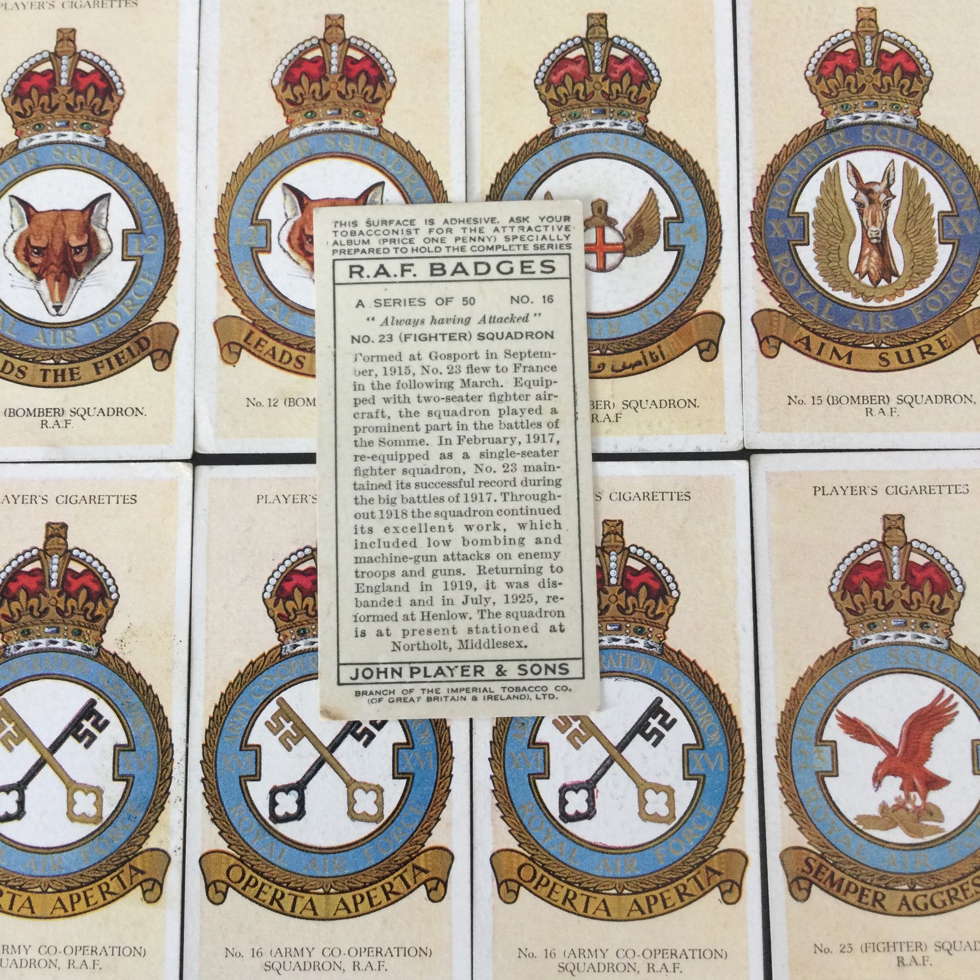 Player's Cigarette Cards 'RAF Badges' 1937. Sold individually - take your pick
