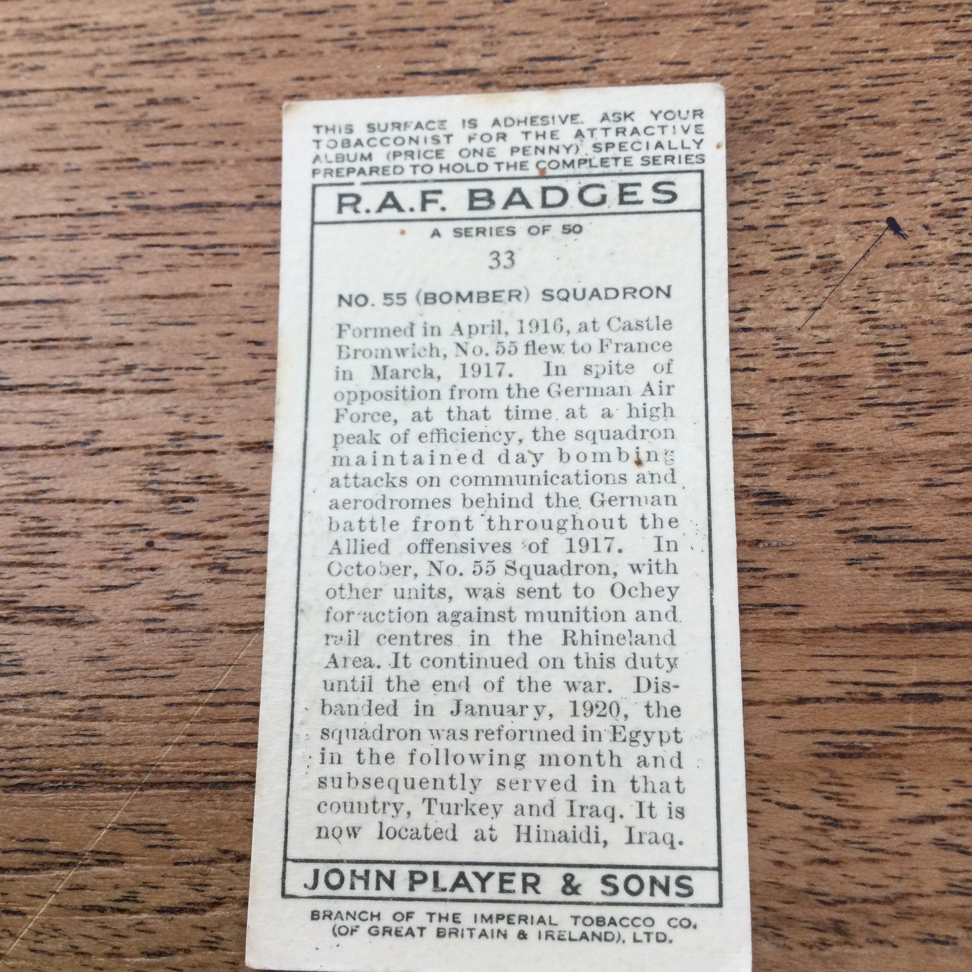 RAF Badges were featured in a series of 50 cigarette cards issued by John Player & Sons in 1937. These cards showcased the fascinating badges of various Royal Air Force (RAF) units. Each card features an emblem with the crown at the top and the motto at the base. For collectors and history enthusiasts, these cards are a captivating read.