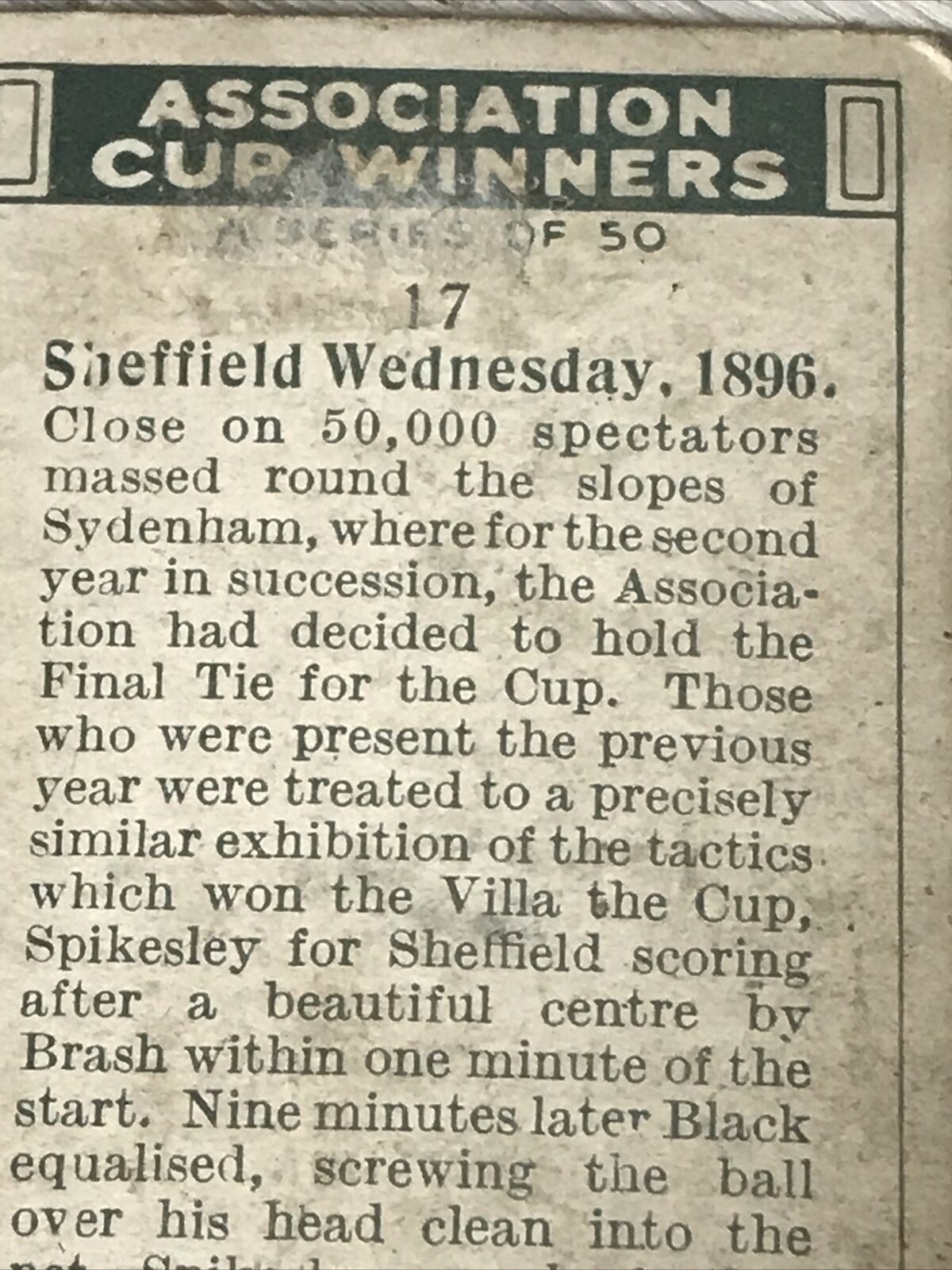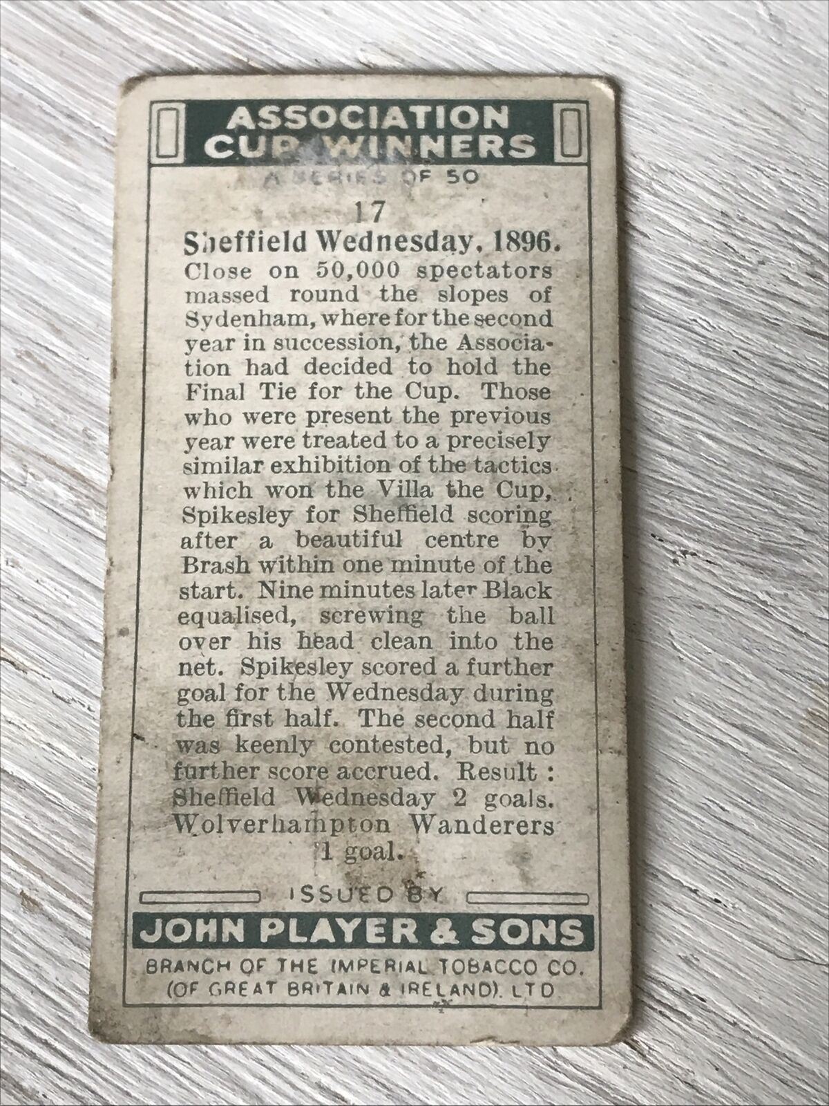 Players Cigarettes Card Association Cup Winners 17 Sheffield Wednesday 1896
