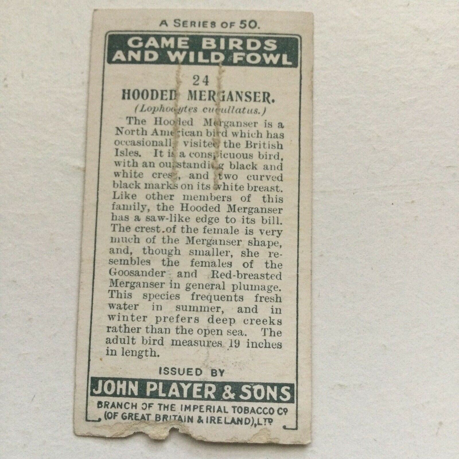 Players Cigarette Card - Game Birds & Wild Fowl - No. 24 Hooded Merganser - DAMAGED