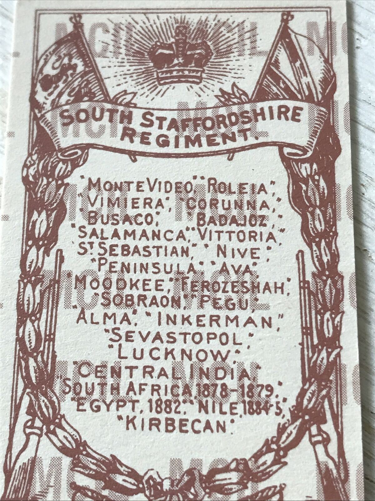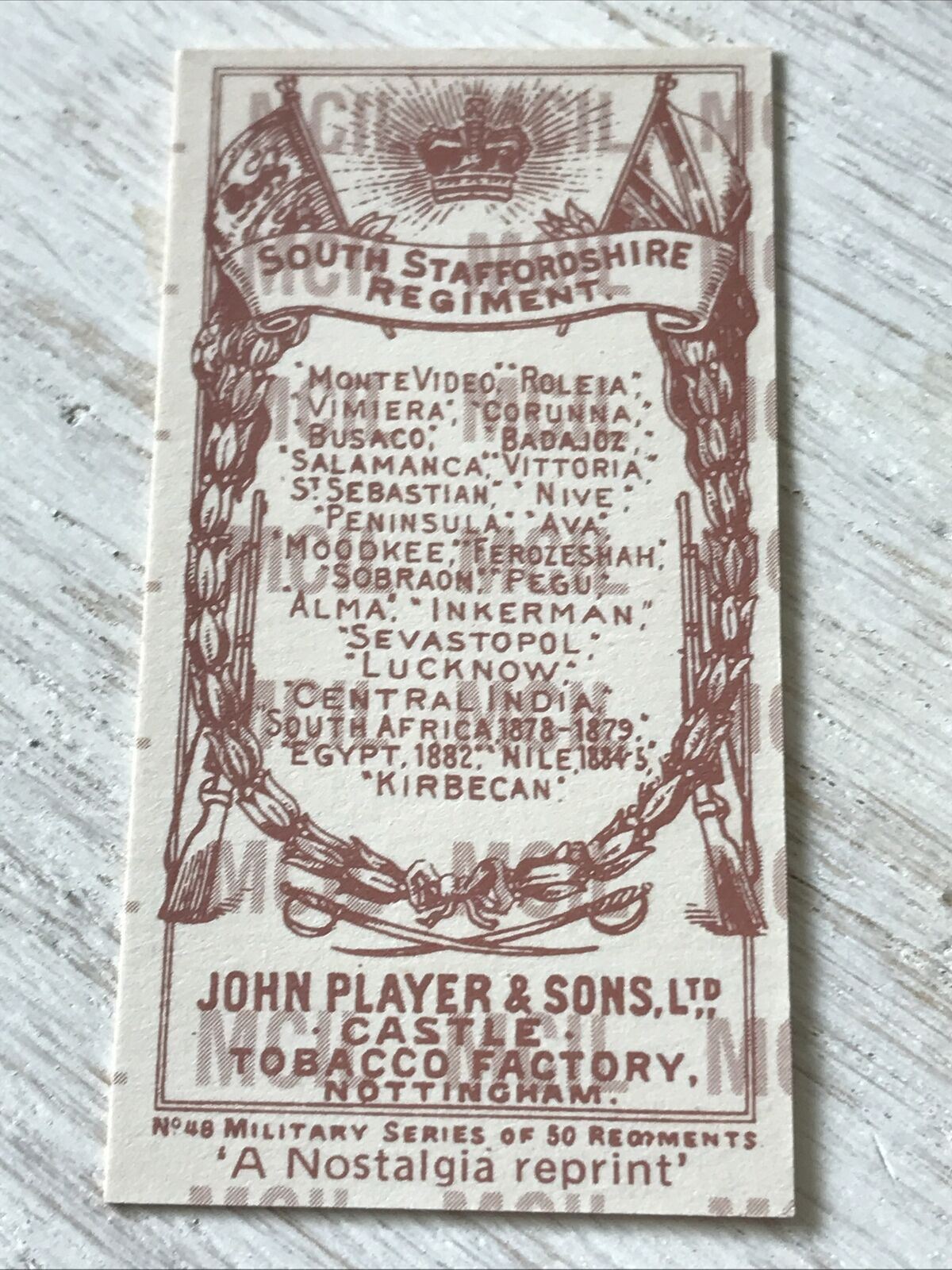 Players Cigarettes Card Nostalgia Reprint. Military South Staffordshire Regiment