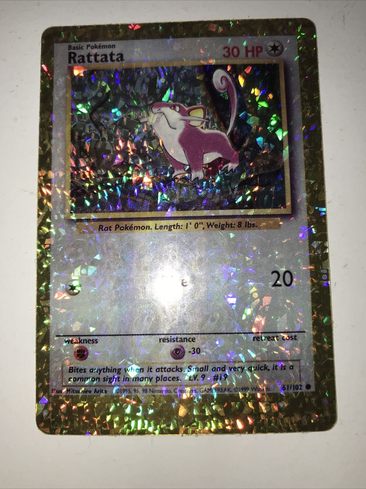 Pokemon Vending STICKER unused 1999 HOLO 61/102 Rattata vintage 90s Base set