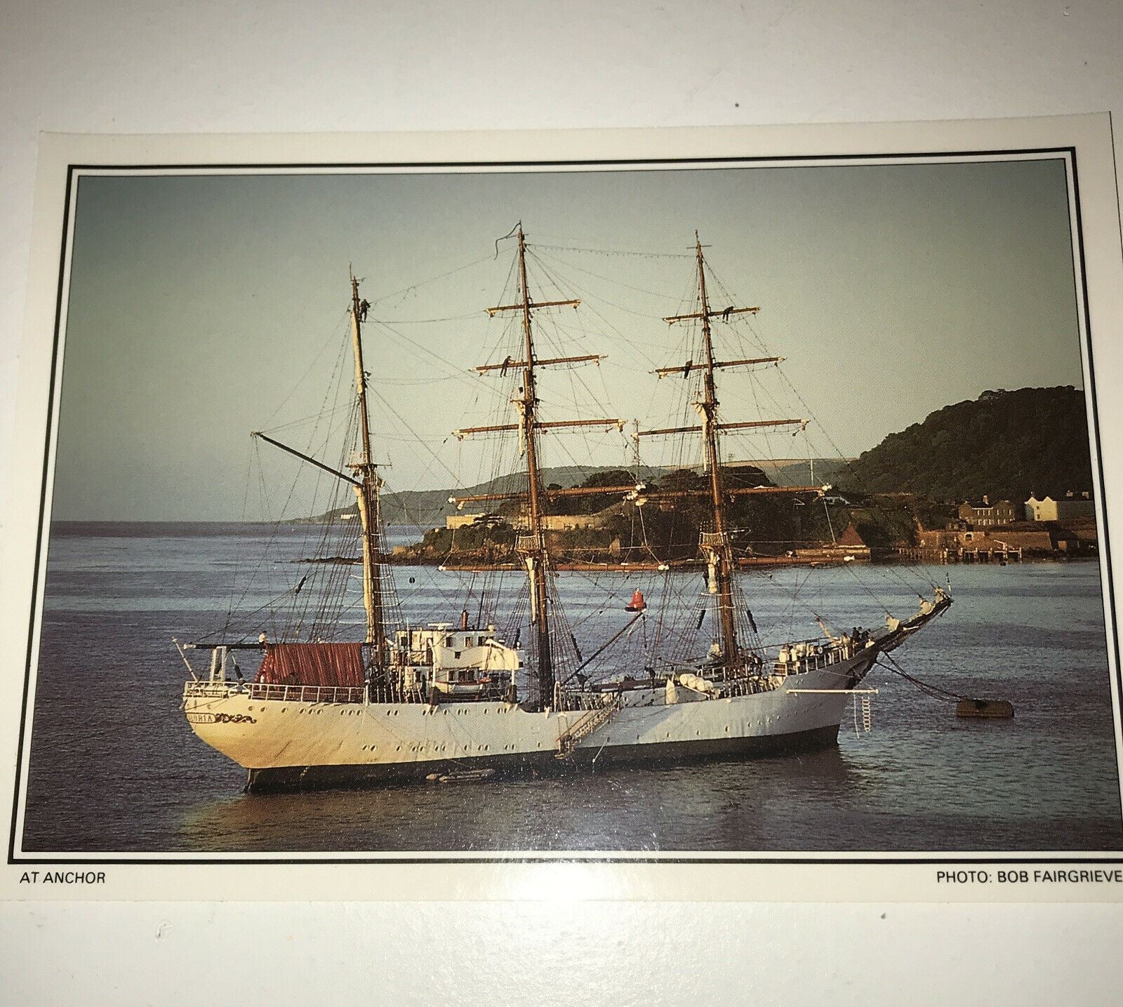 Vintage Postcard - Plymouth Devon Off West Hoe -Plymouth Sound - Sailboat at Anchor - Seascape.