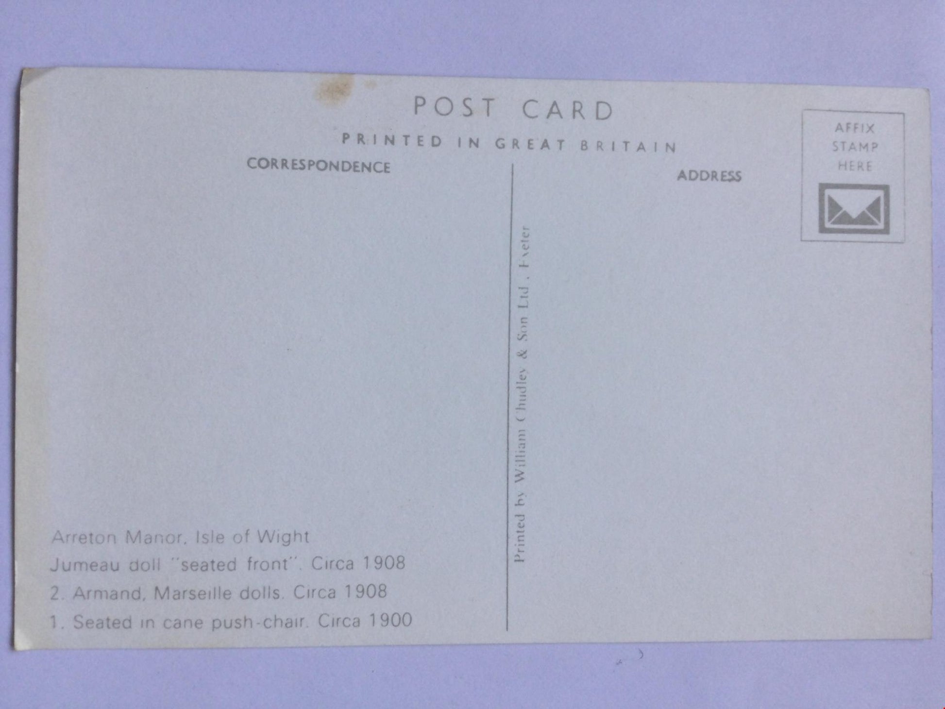 POSTCARD SHOWING ANTIQUE DOLLS - ARRETON MANOR DOLL MUSEUM - ISLE OF WIGHT c1900