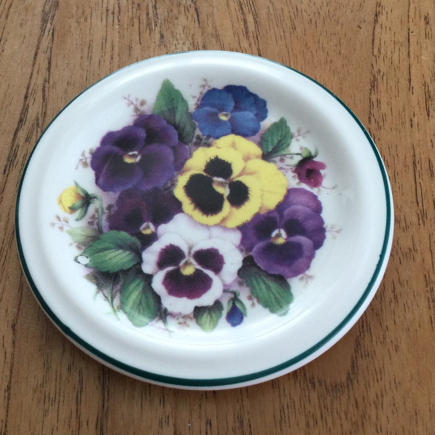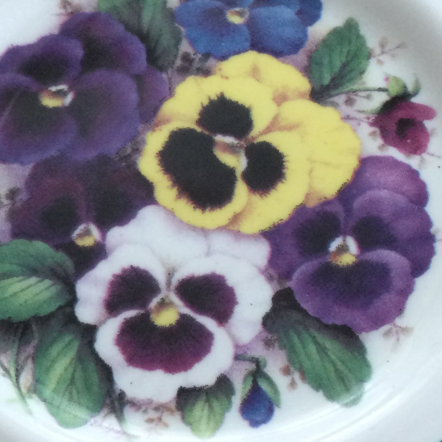 Pretty Pansy Design Total Elegance China Coaster. Staffordshire Fine Bone China. Bright Florals.