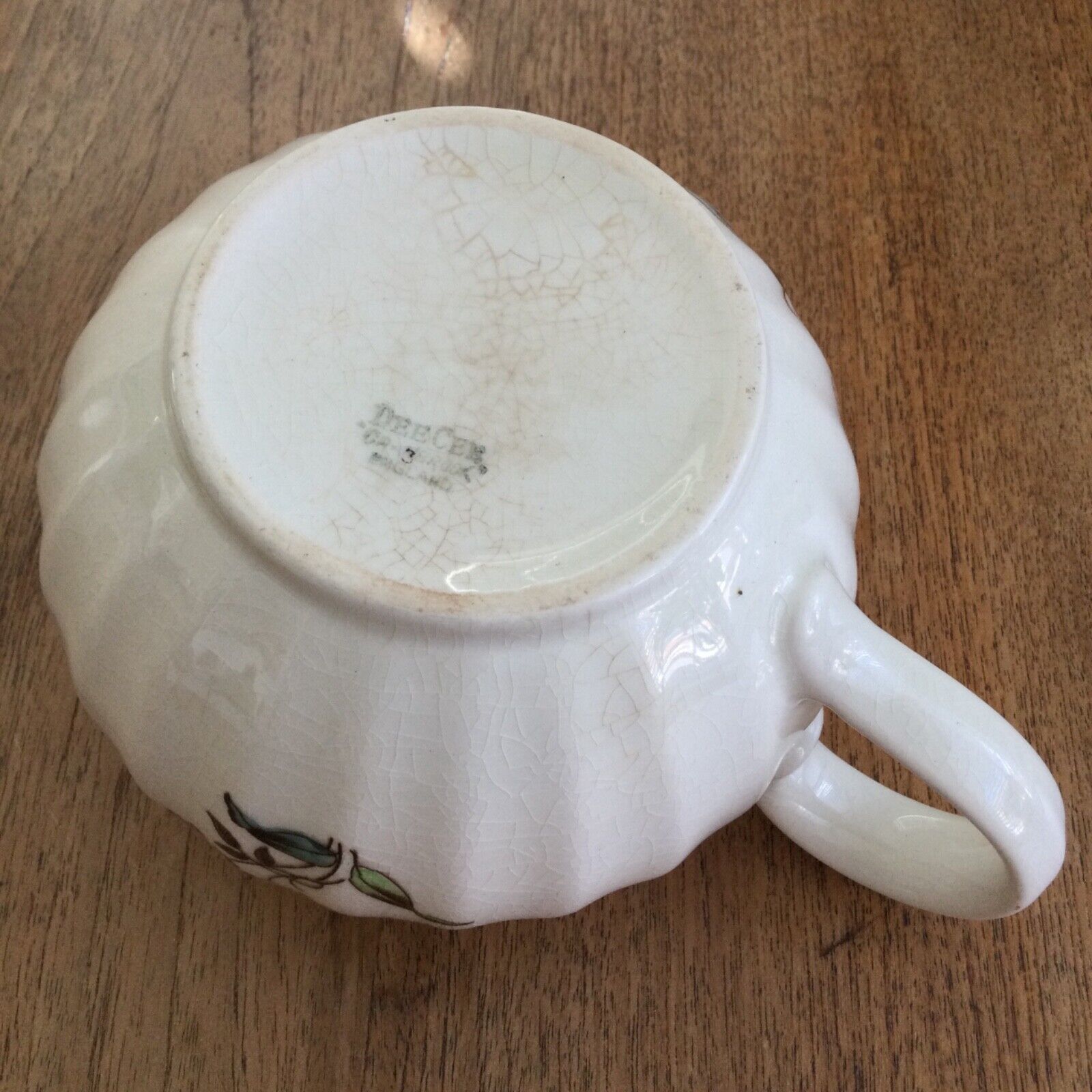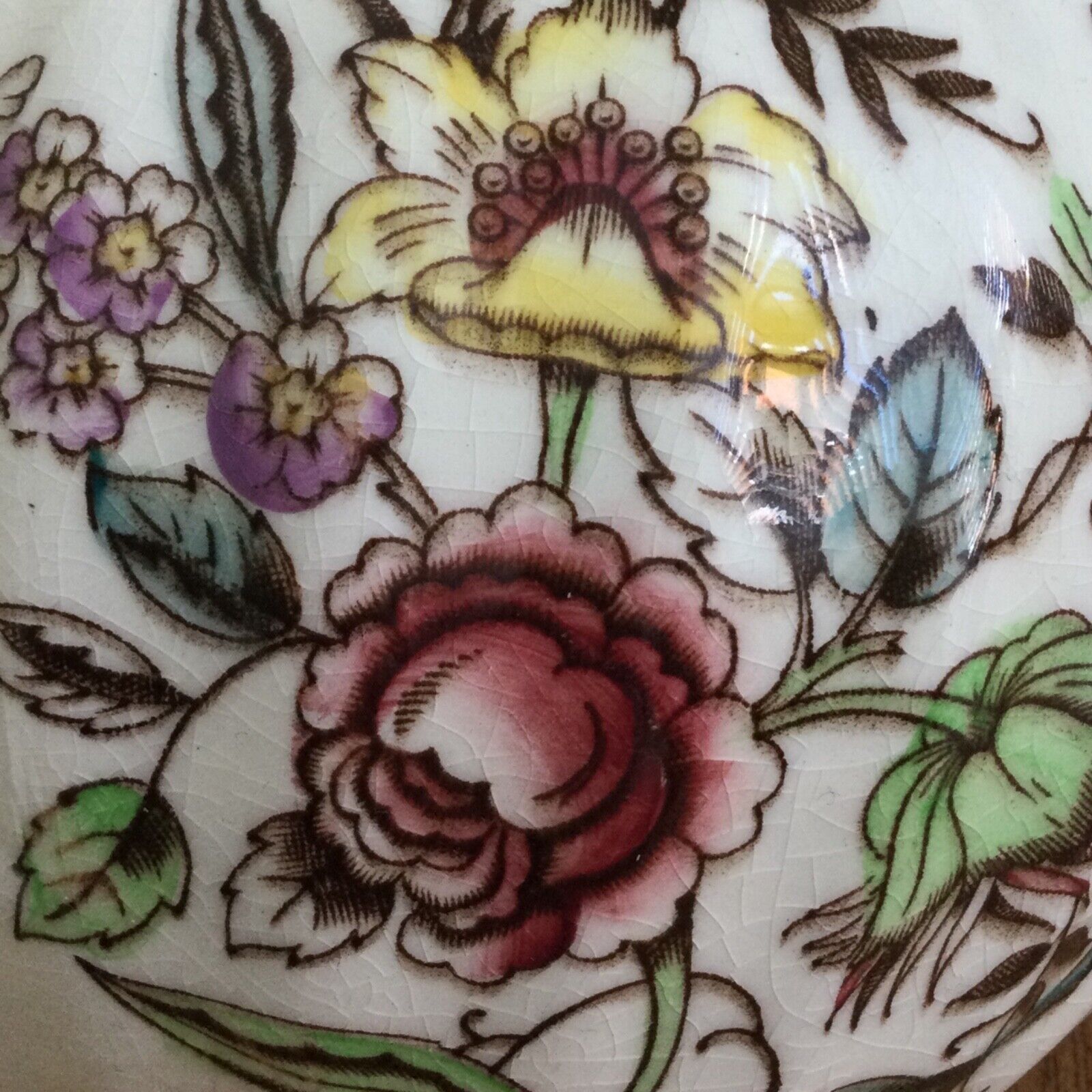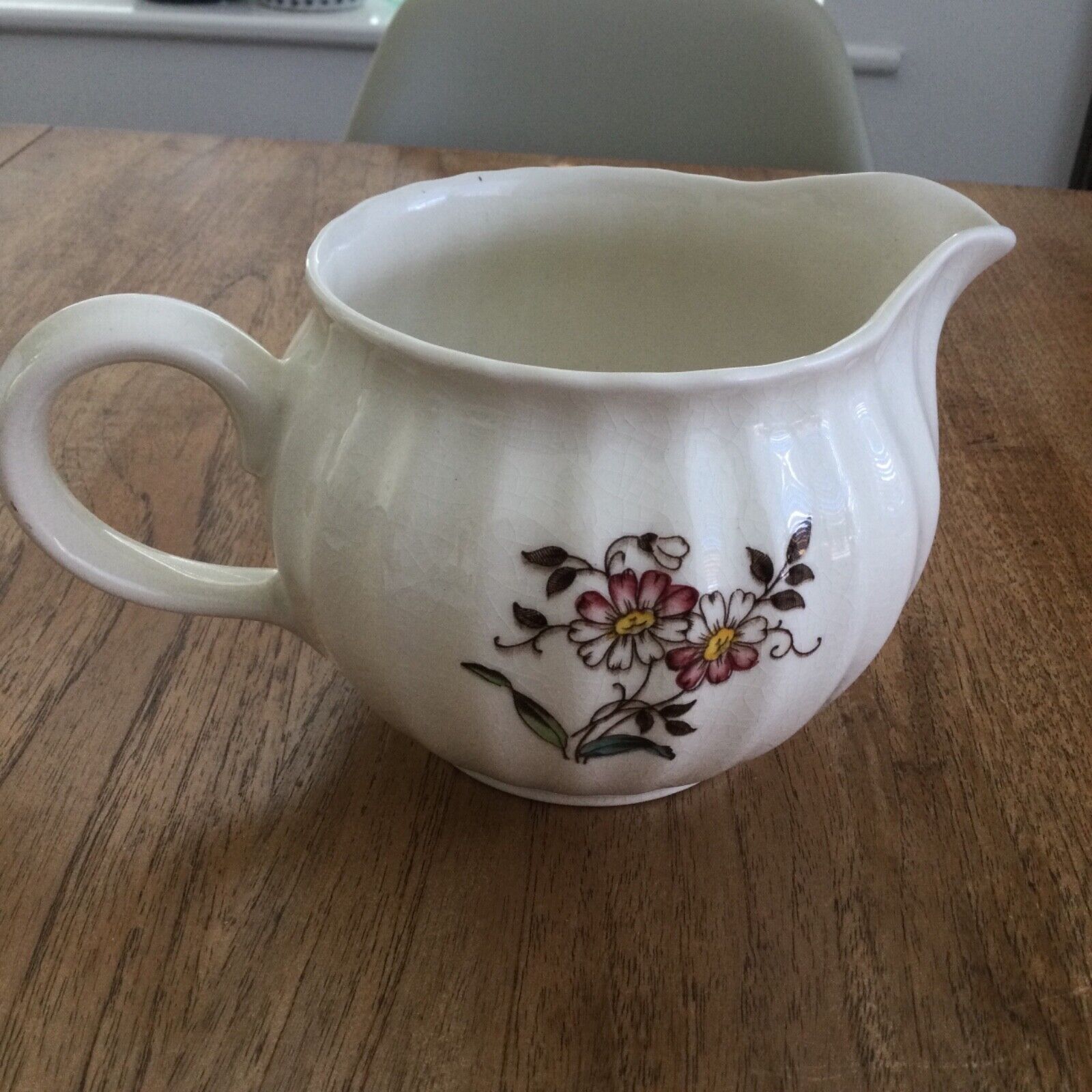 Pretty vintage floral jug Dee Cee cream pink yellow green pastels 12cm Cranbrook. Bulbous round shape.