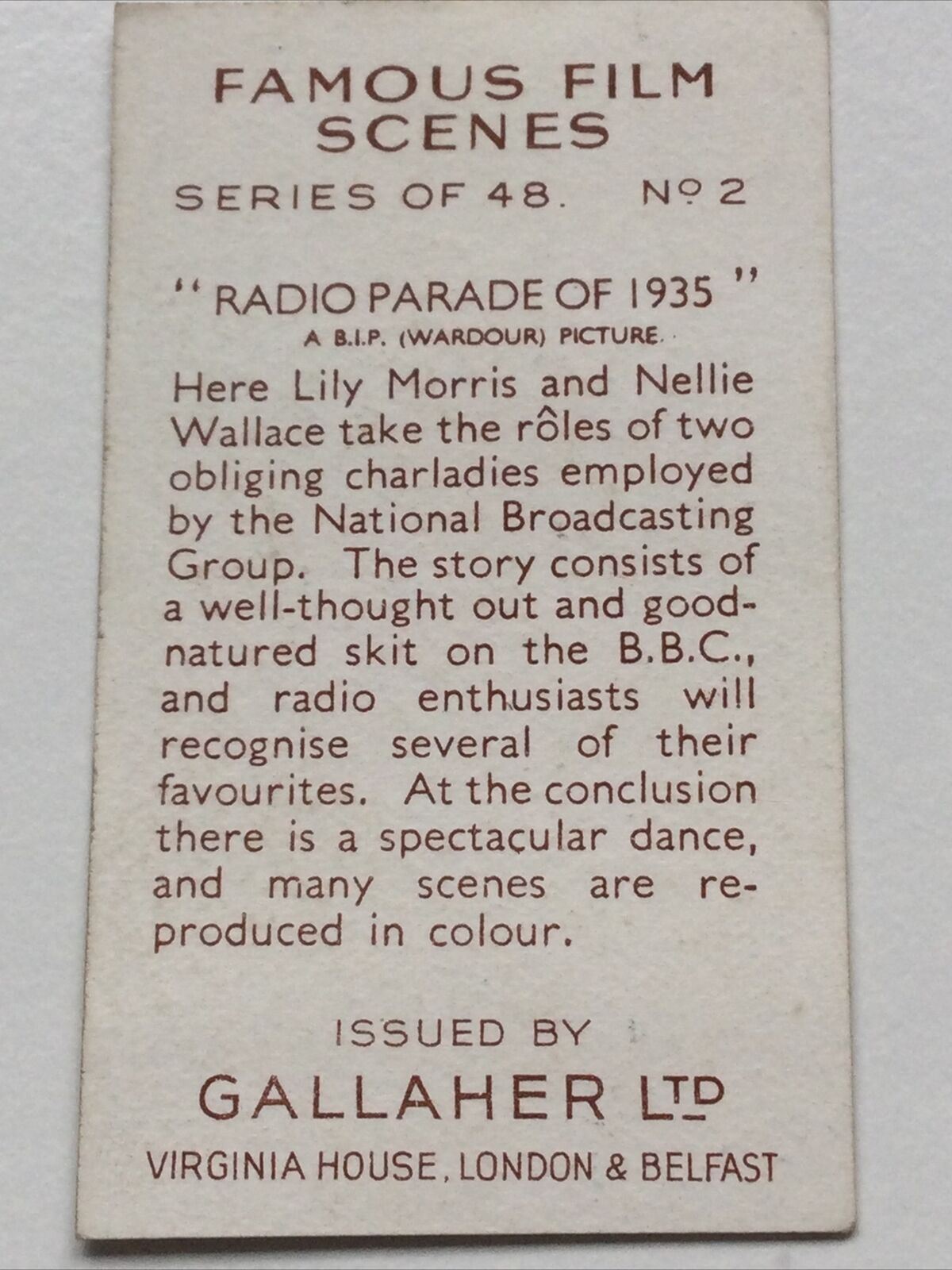 GALLAHER CIGARETTE CARD - FAMOUS MOVIE SCENES - No. 2 RADIO PARADE OF 1935 - 1930s Skit