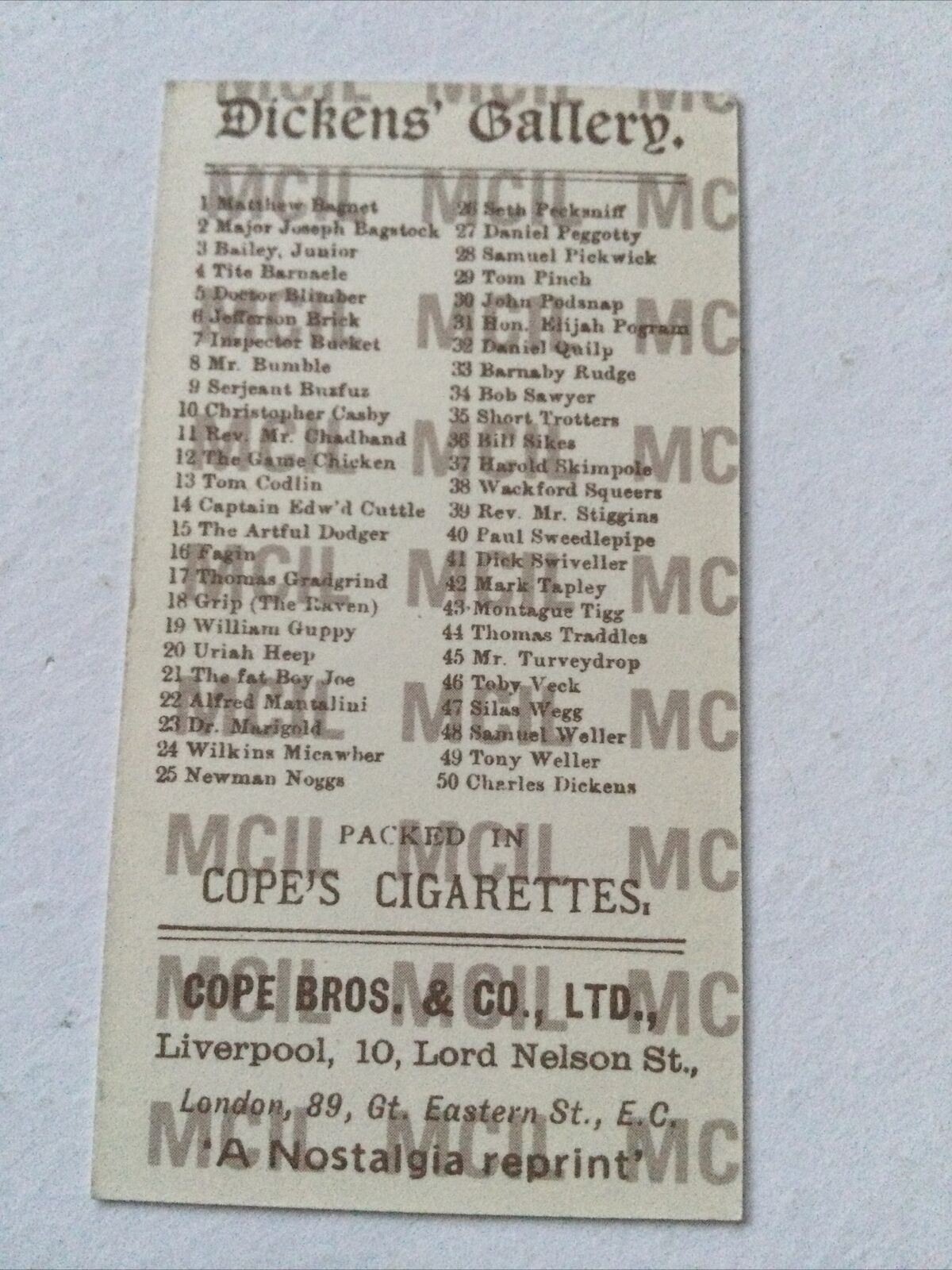 REV MR STIGGINS Dickens Gallery Cope Bros Cigarette Card #12 Reprint PICKWICK