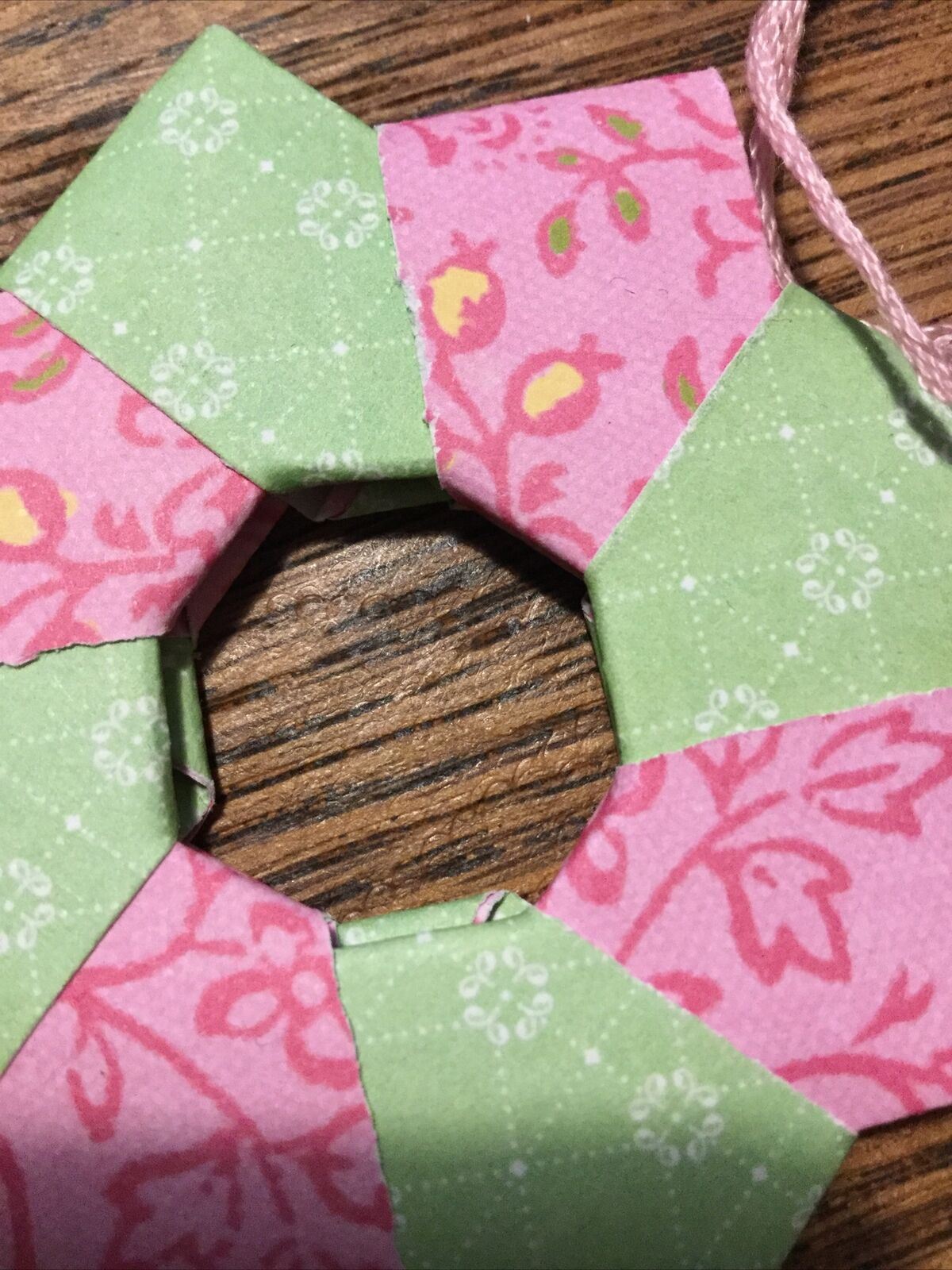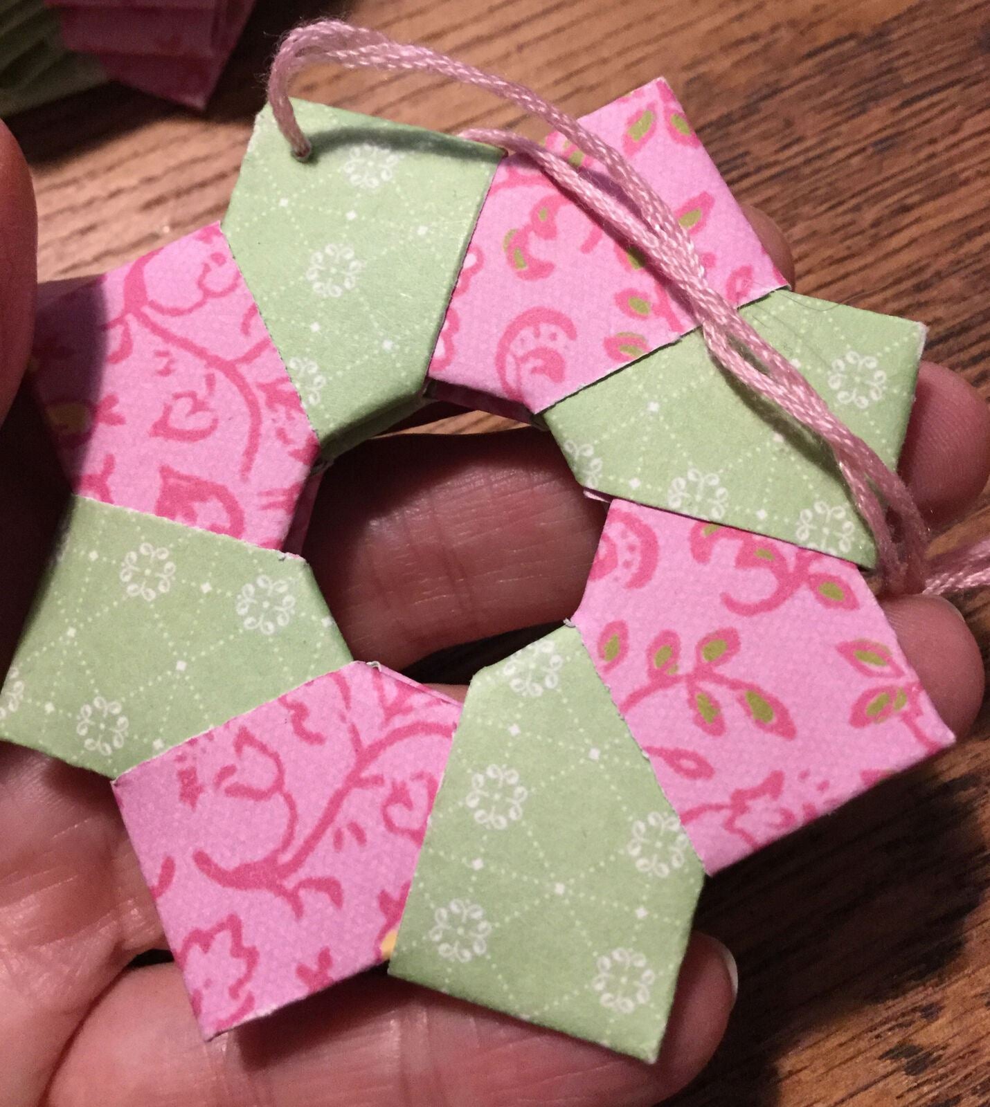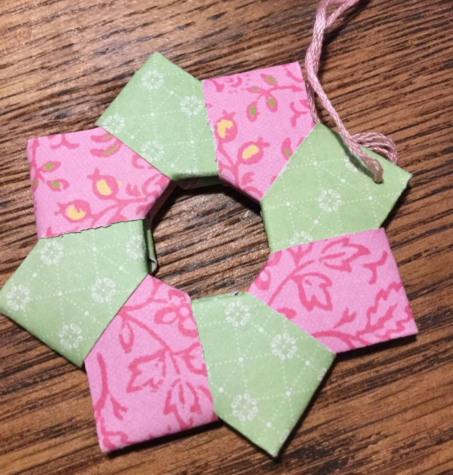 Set Of 6 Handmade Origami Star Christmas Tree Decorations / Room Decor - Baubles - Hanging - Pink Green