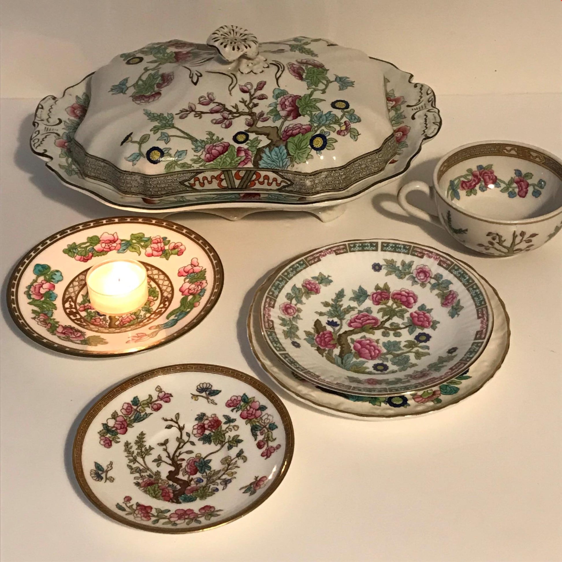 Indian Tree Design Saucer Vintage. Pink Green. Floral. Pretty. Classic Design. Condition is Used. Dispatched with Royal Mail 2nd Class.