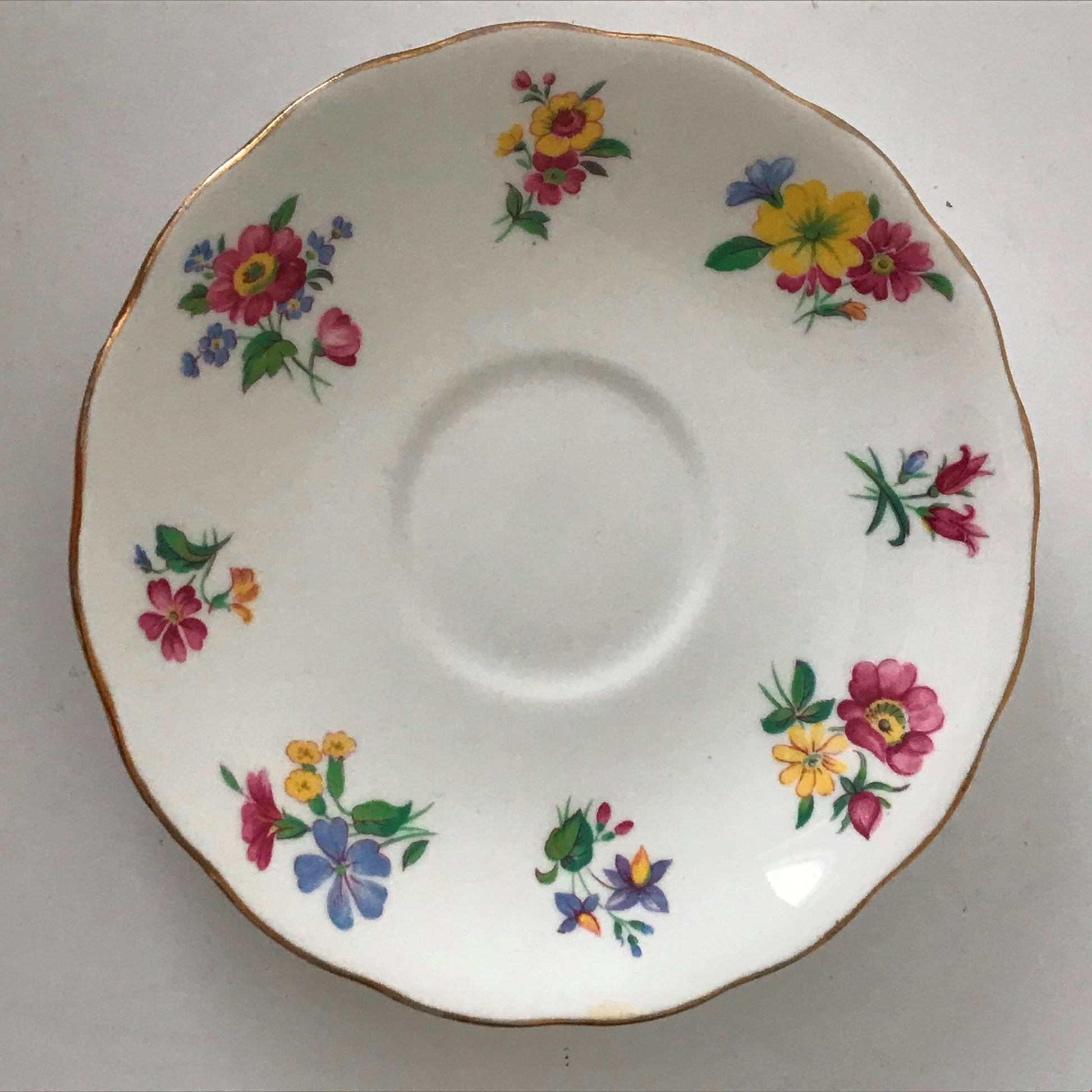 Spare Vintage Vale Bone China Saucer Floral pretty multicoloured flowers