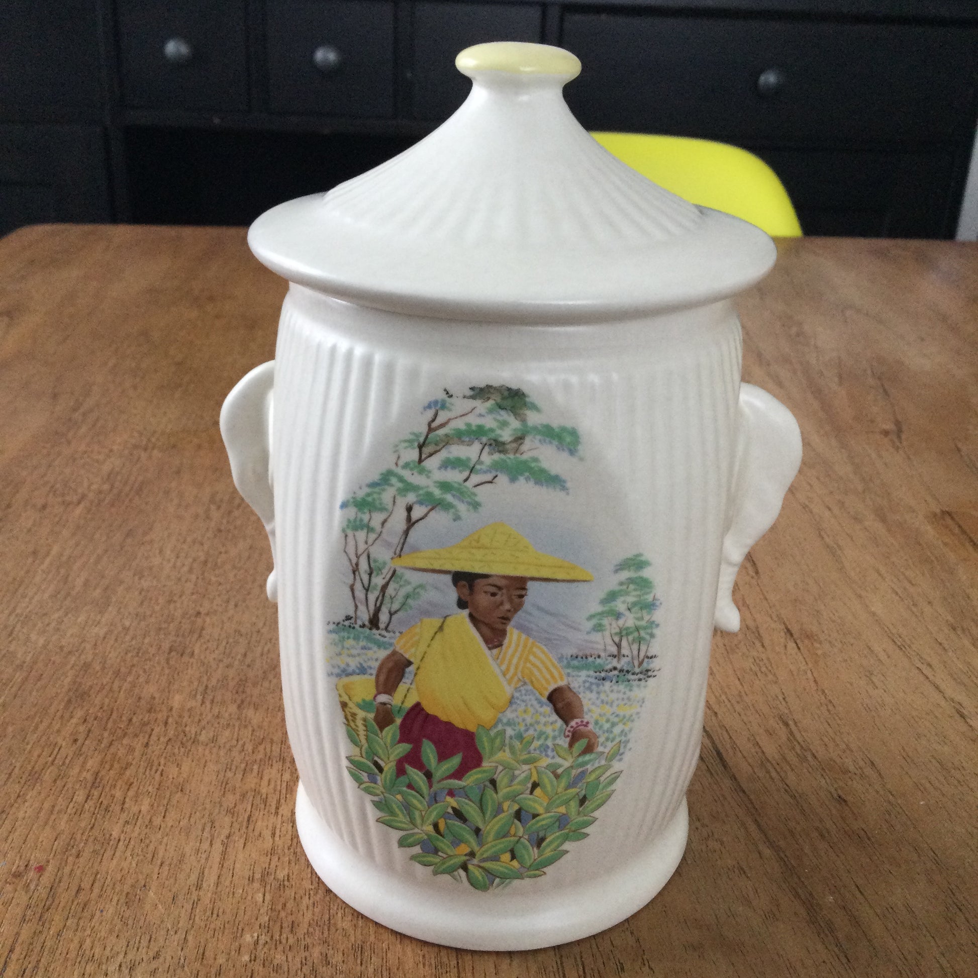 SPARE LID for SylvaC vintage c1950s ceramic tea canister. Ceylon tea picker design, handles are elephant ears! Pattern no.3372