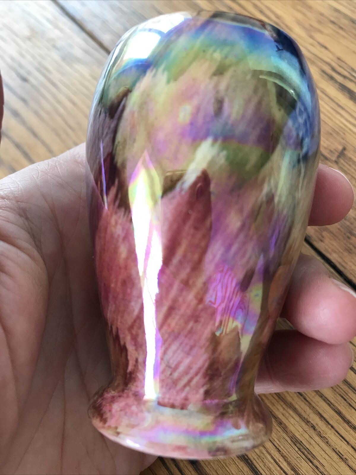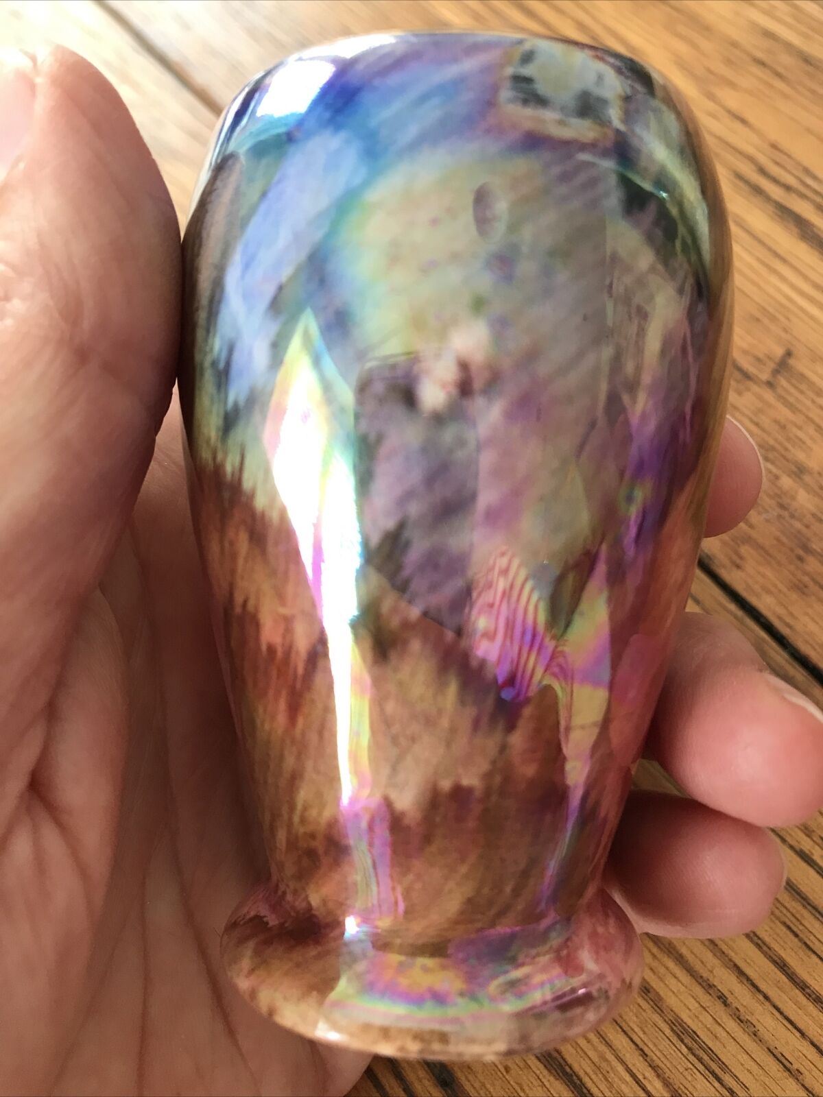Tiny Vase Lustre Ware Jewel Colours Oldcourt Ware Hand painted 8cm Gold Rim Shiny.