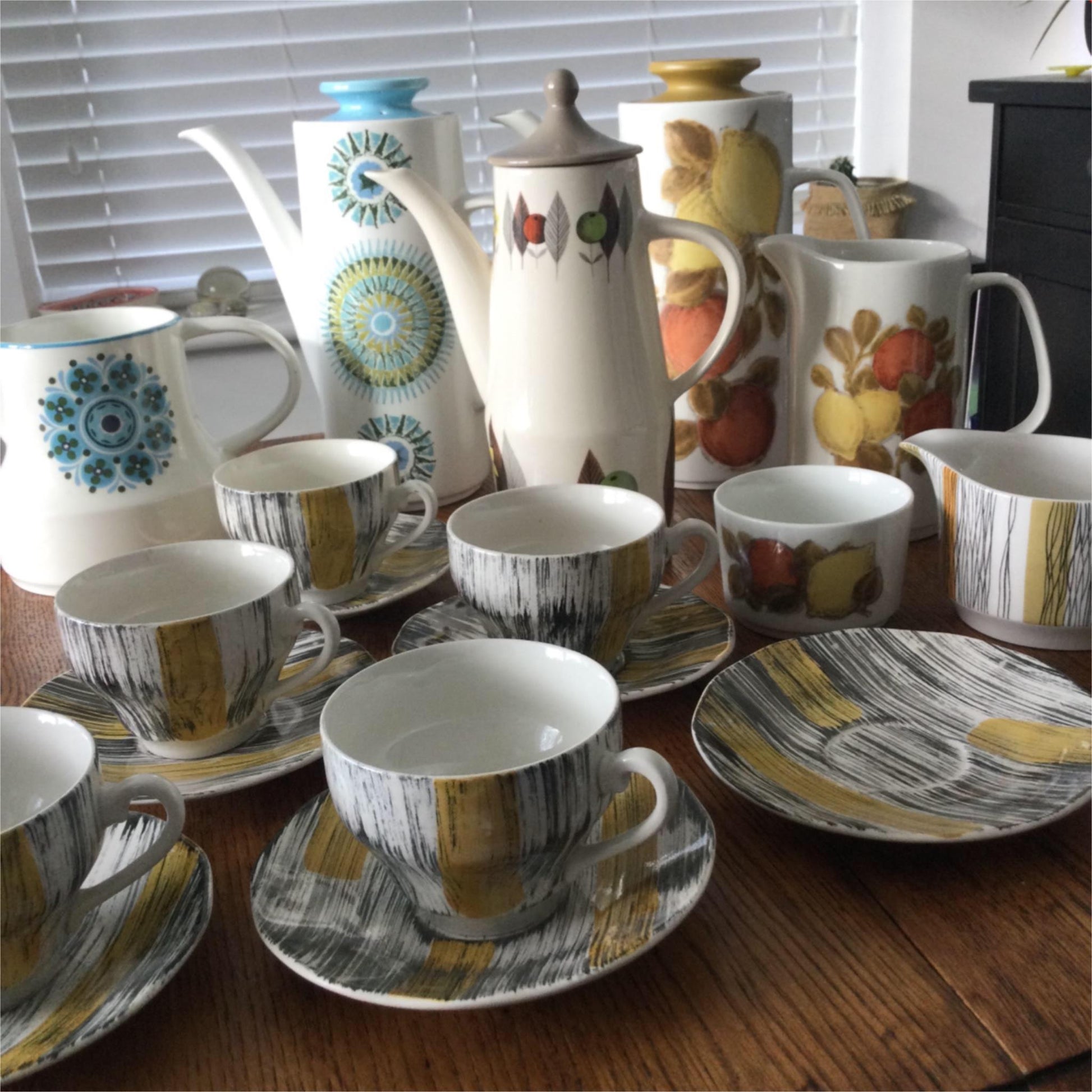 VINTAGE RETRO 70s Mustard Brown CUSTARD CREAM JUG STRIPED CHRISTMAS DINNER
