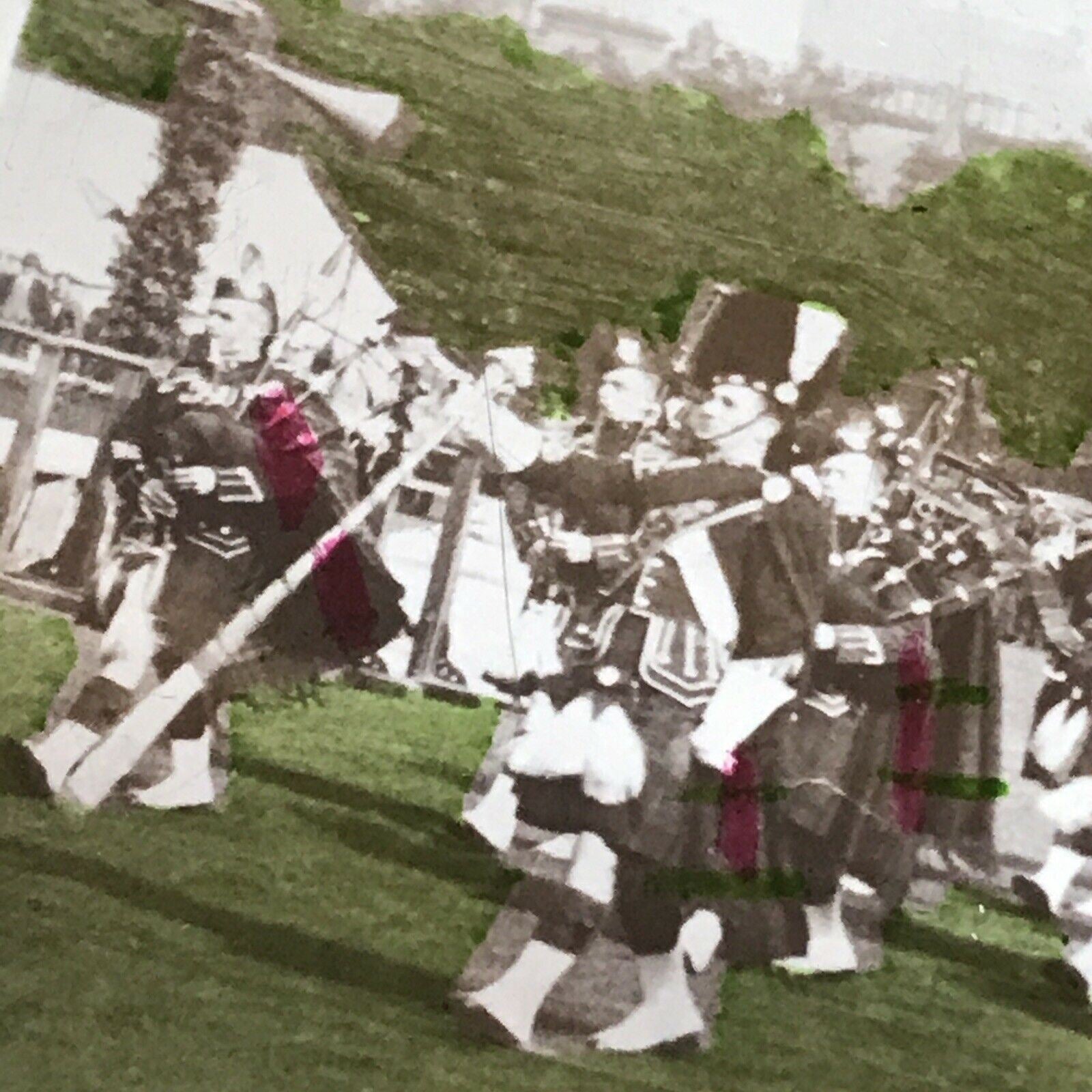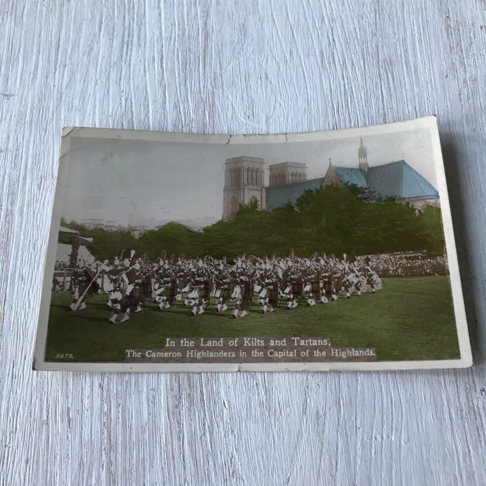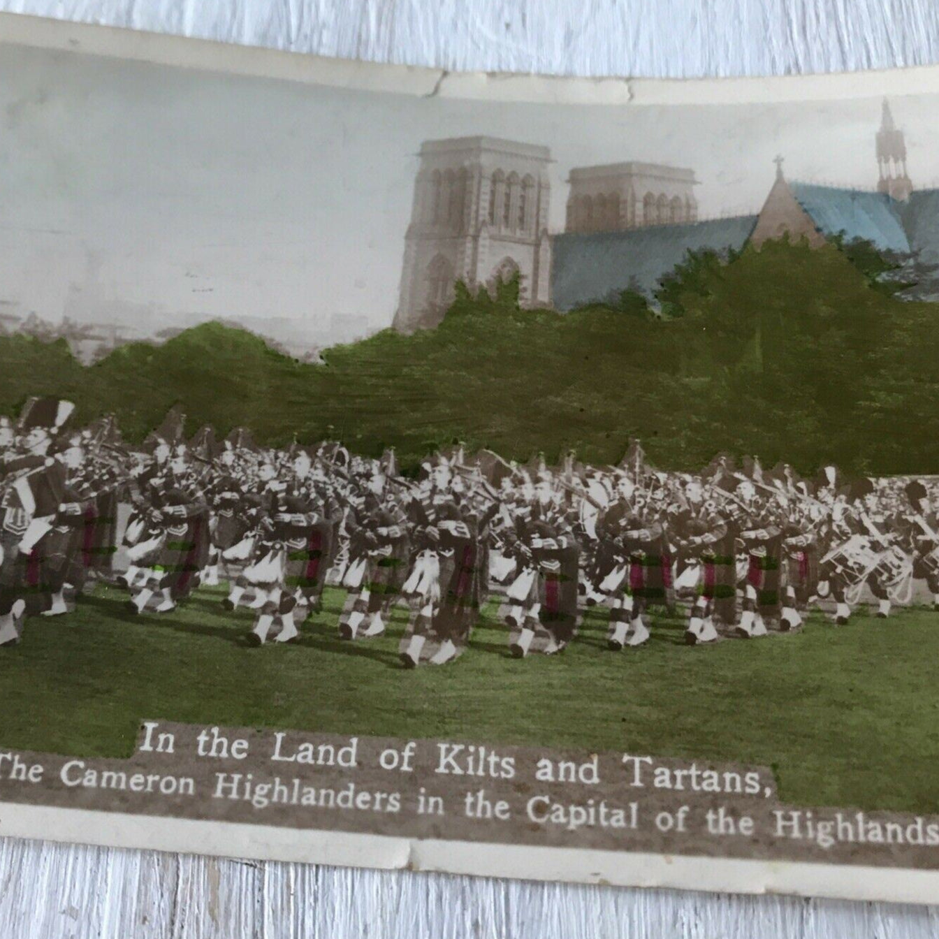 Vintage 1930s Postcard Tinted Scotland 1934 Cameron Highlanders Kilts Tartans. Condition is "Used". Dispatched with Royal Mail in card-backed envelope for protection