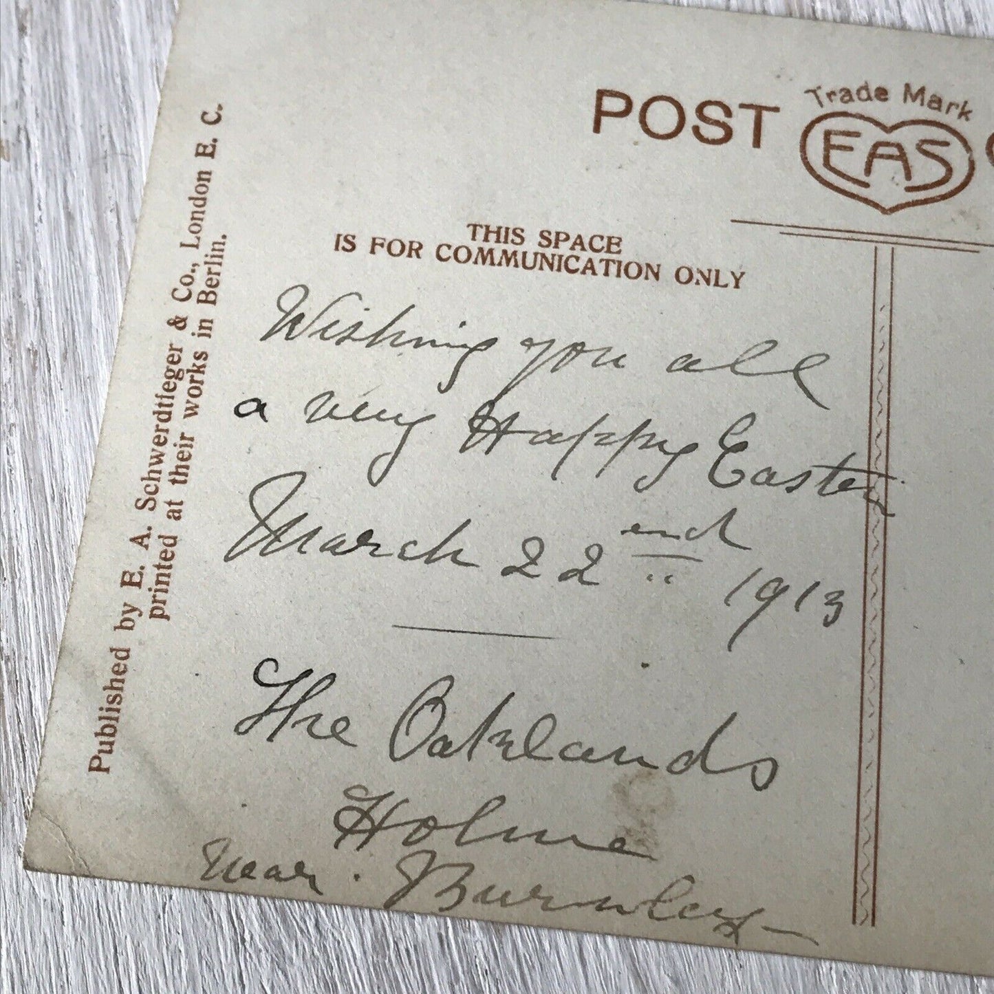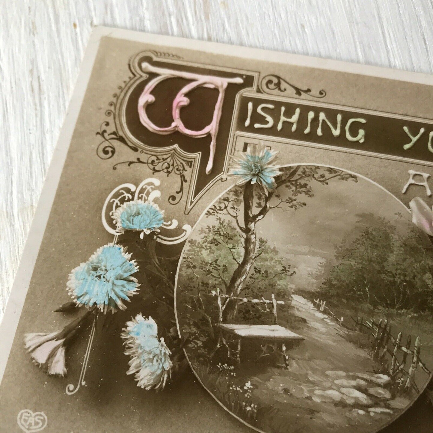 Vintage Antique EASTER Postcard Hand Tinted. Scenic Floral Sepia 1913 Schwerdtie