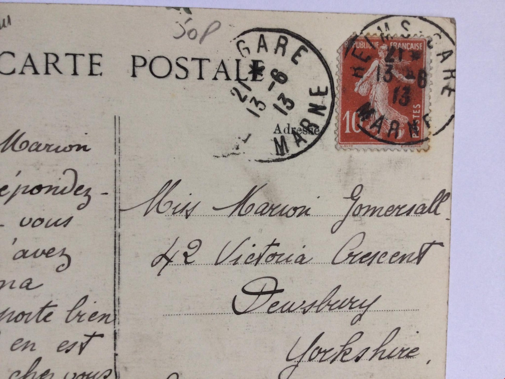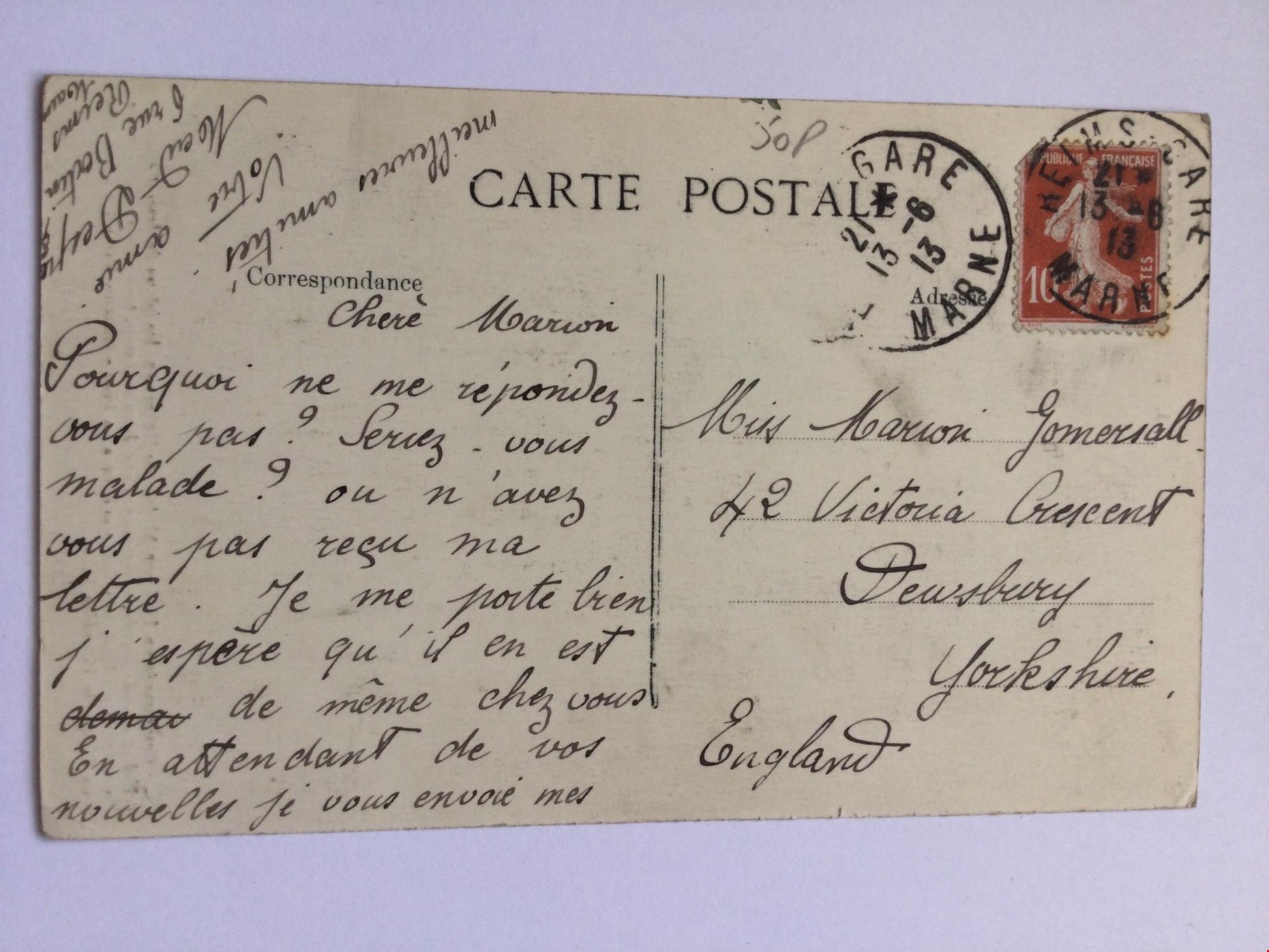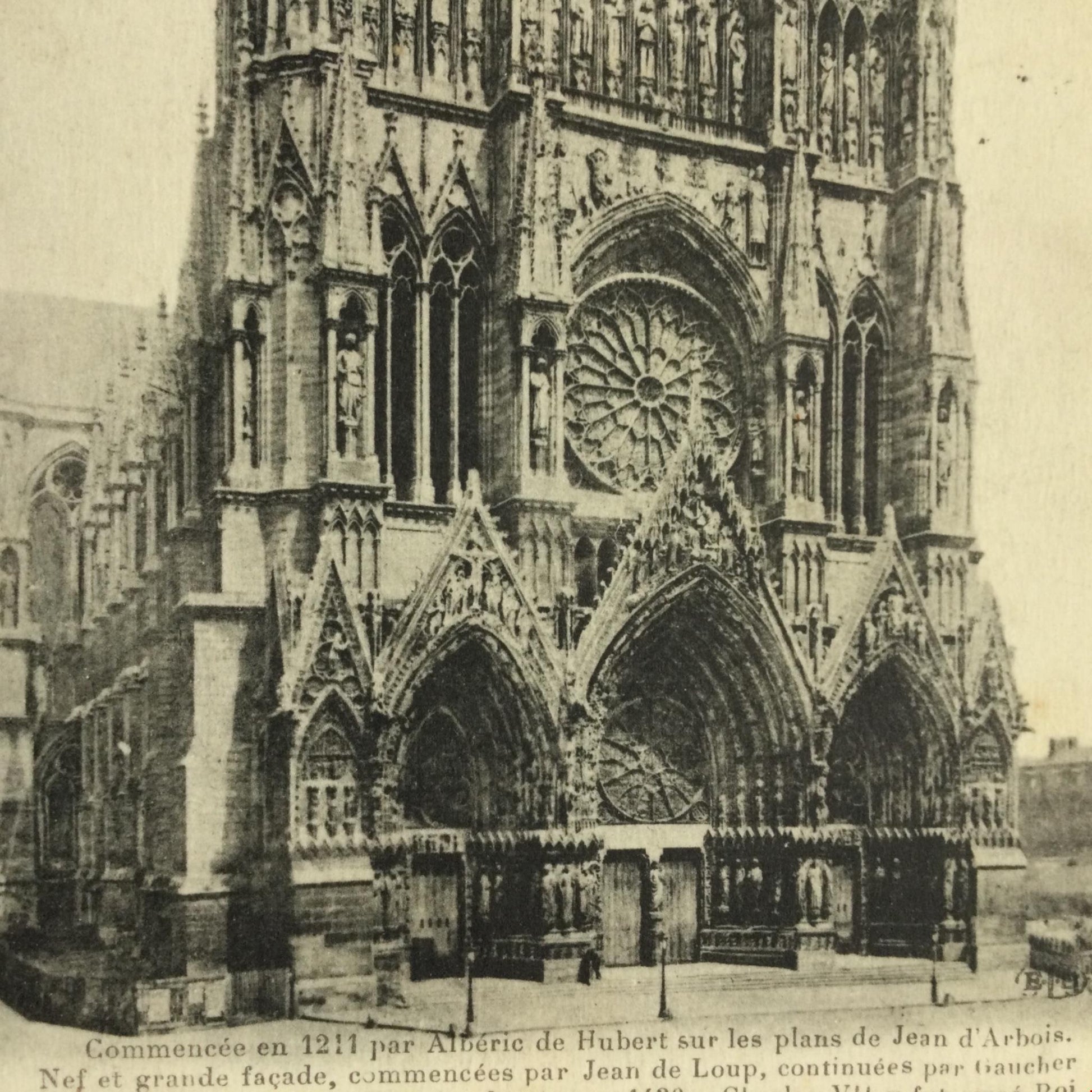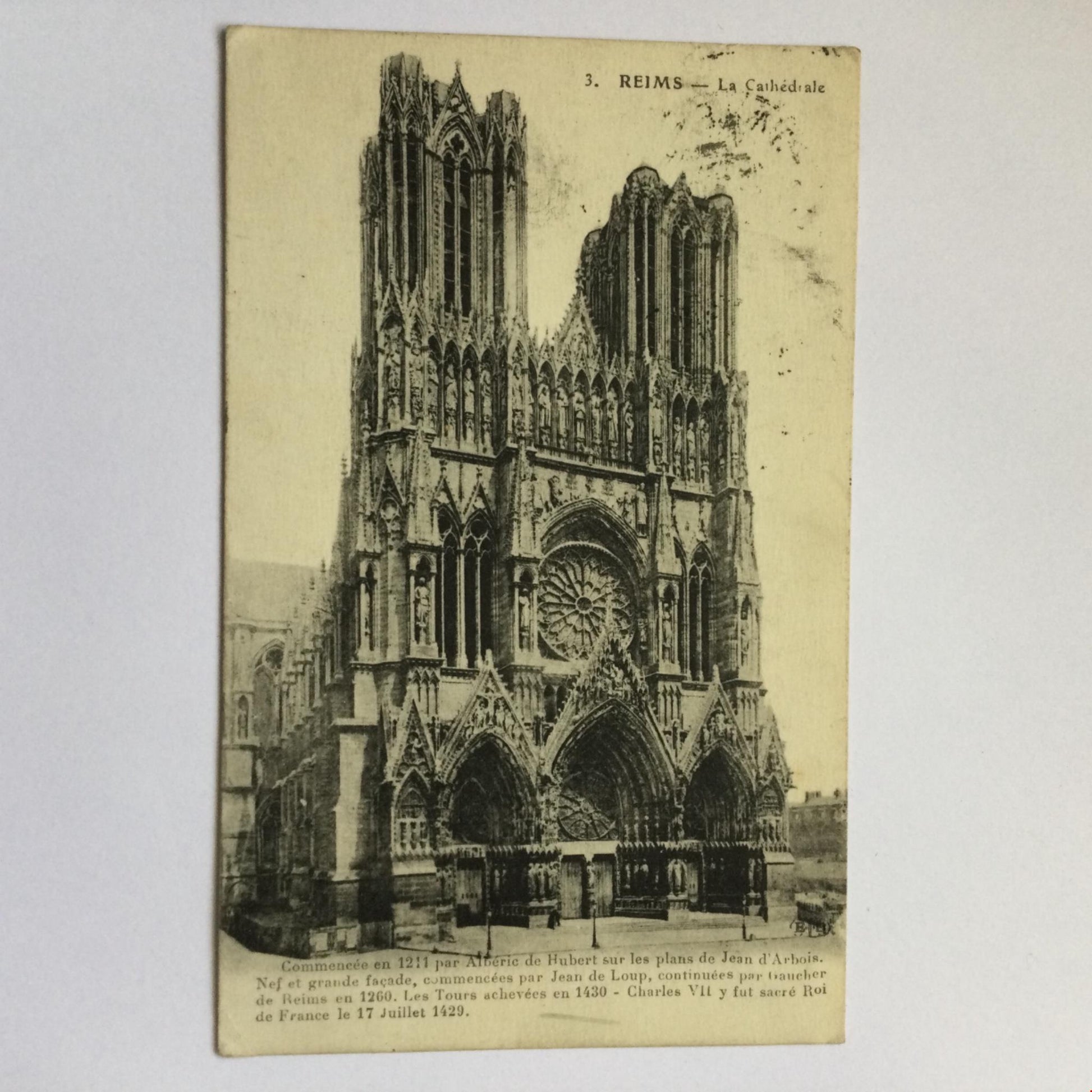 Vintage ANTIQUE postcard France 1913 REIMS CATHEDRAL posted to England