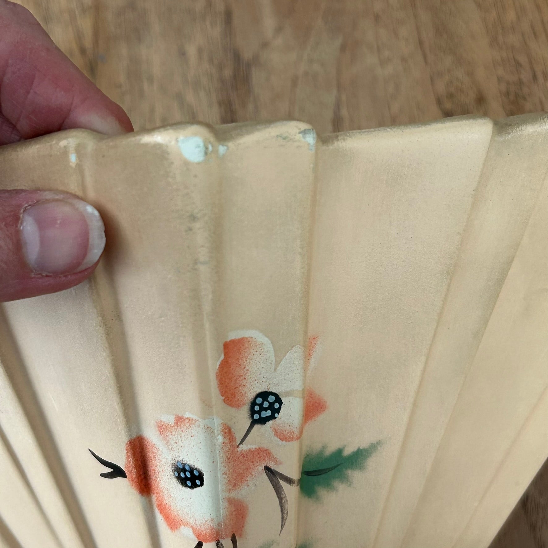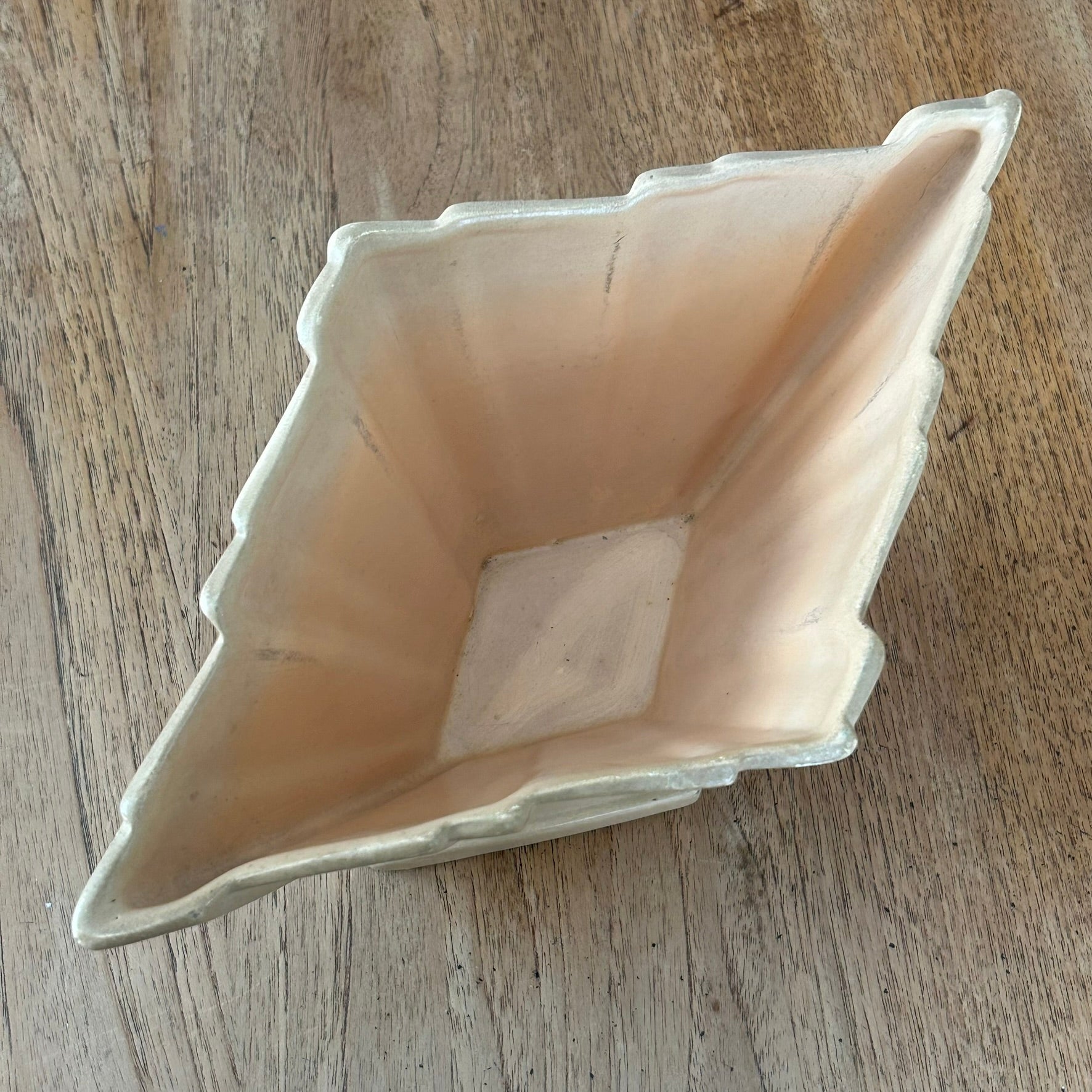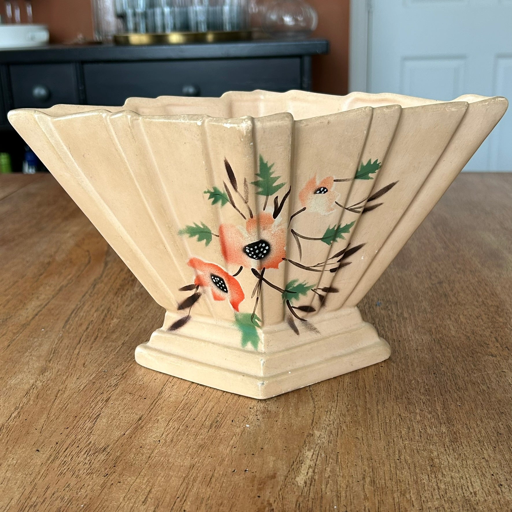 Vintage Art Deco 1930s Diamond Shape Mantle Vase - Peach Colour With Hand Painted Poppy / Anemone Design