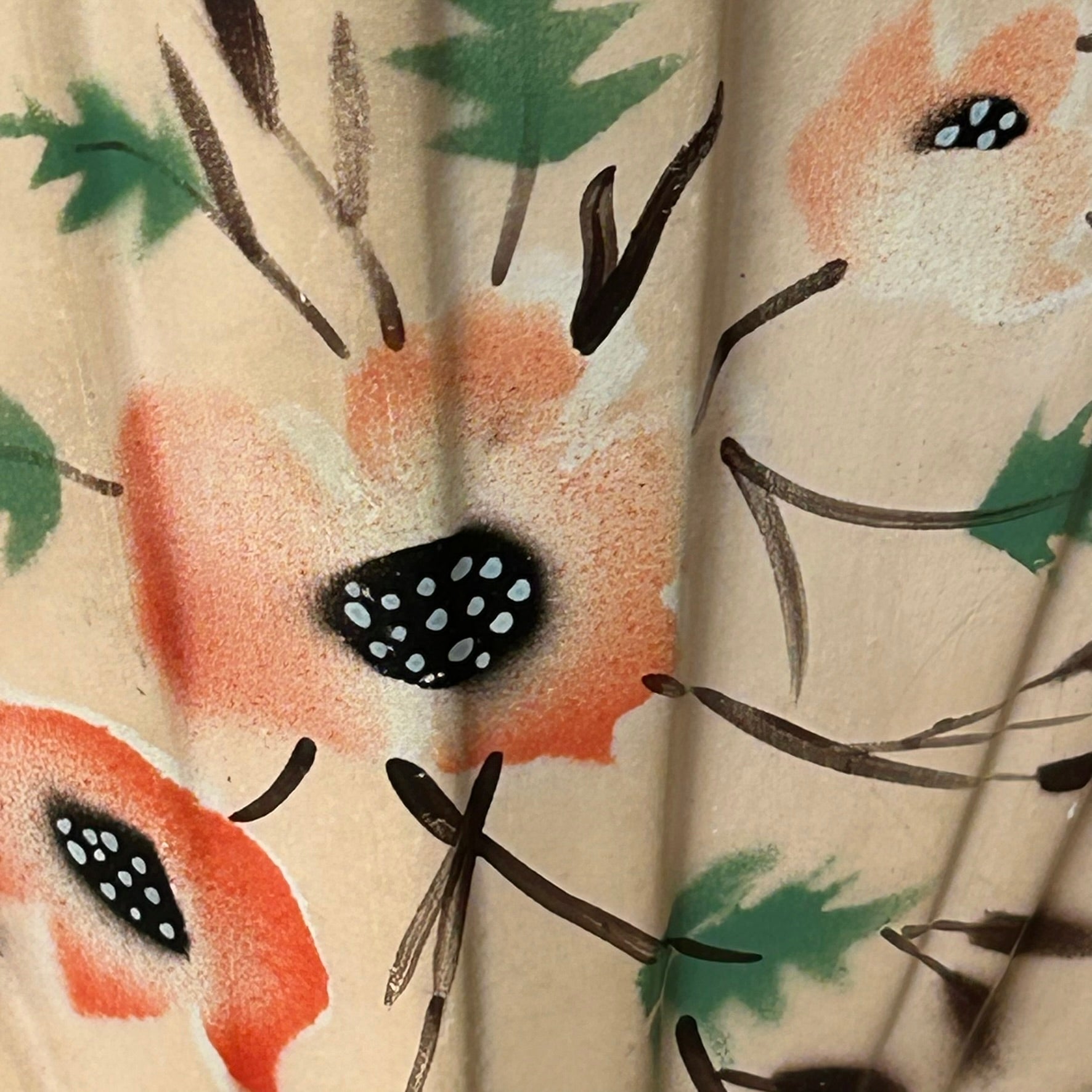 It has a lovely soft matt finish, and is peach on colour. Hand painted with an anemone design.