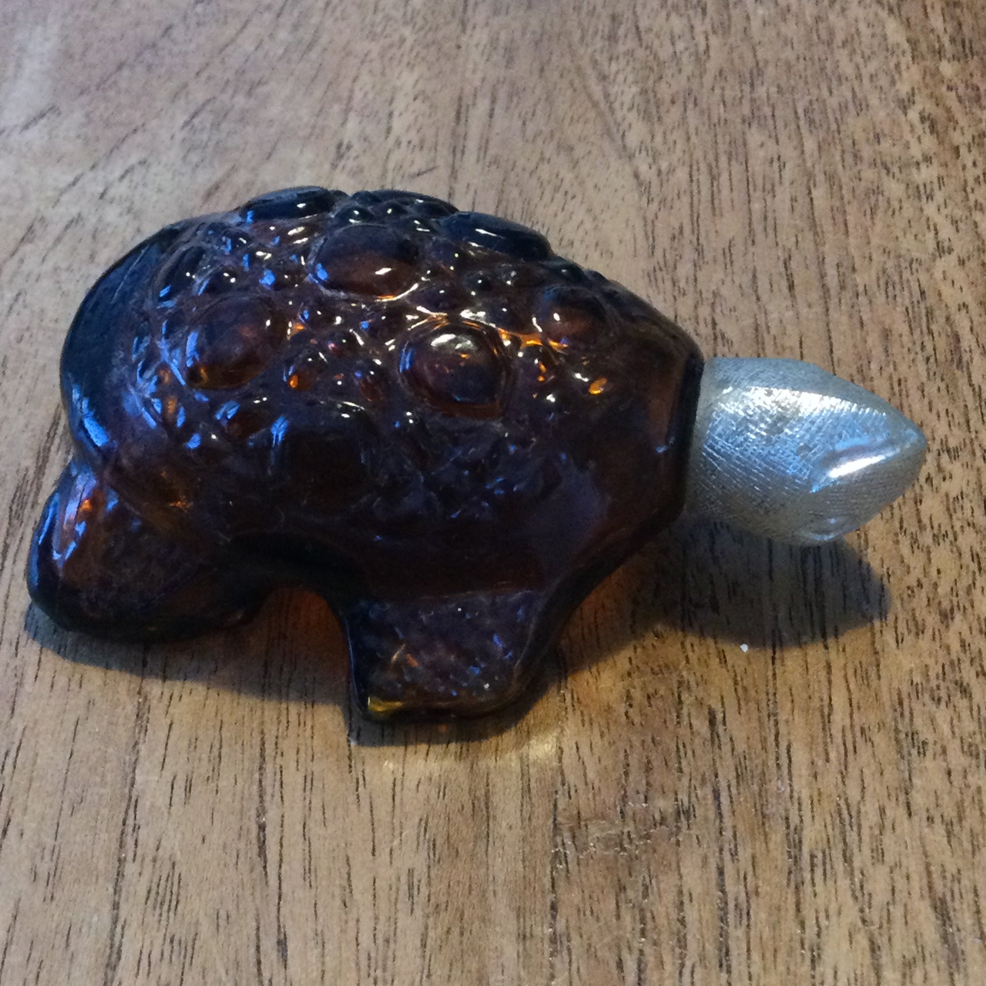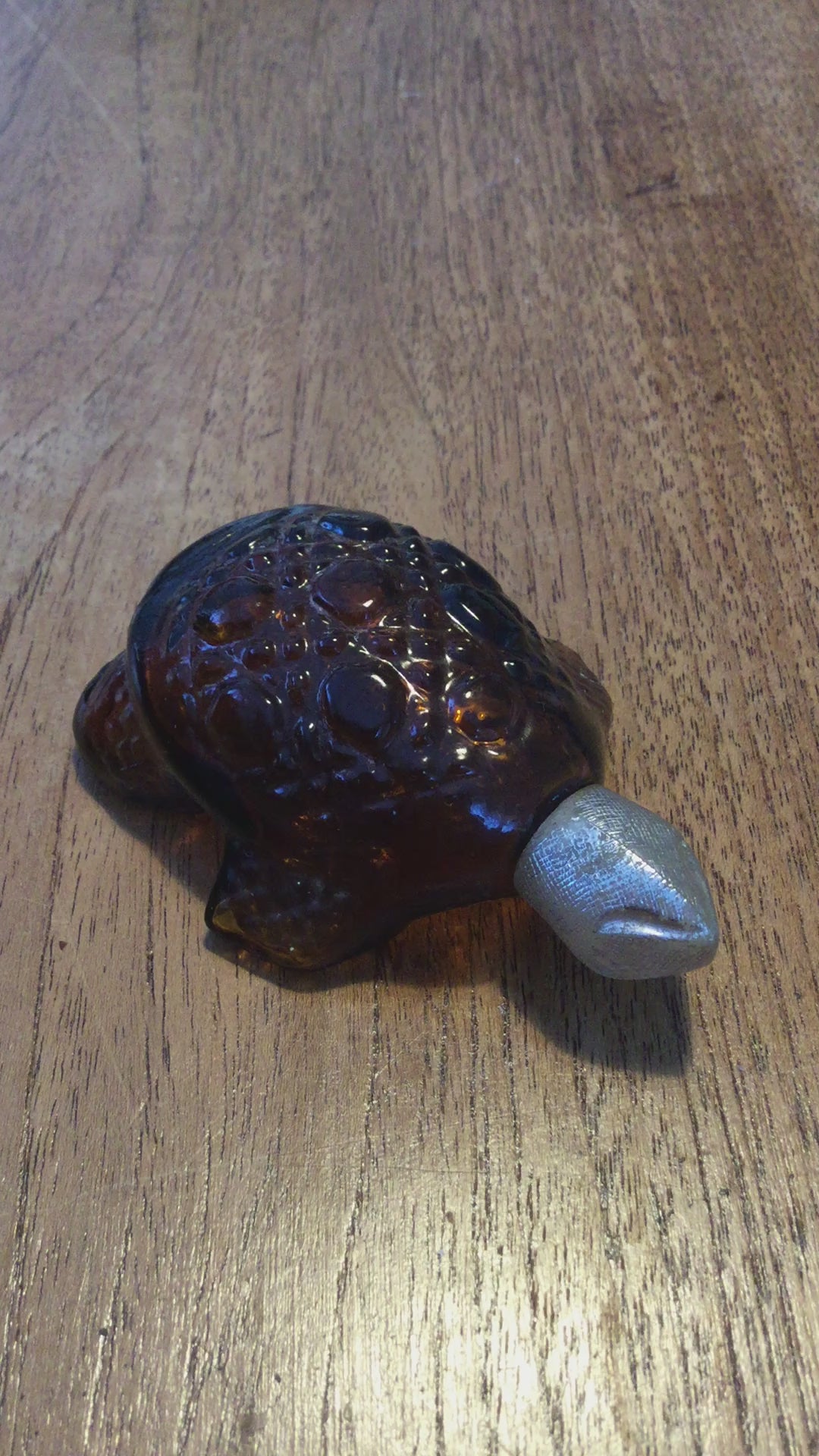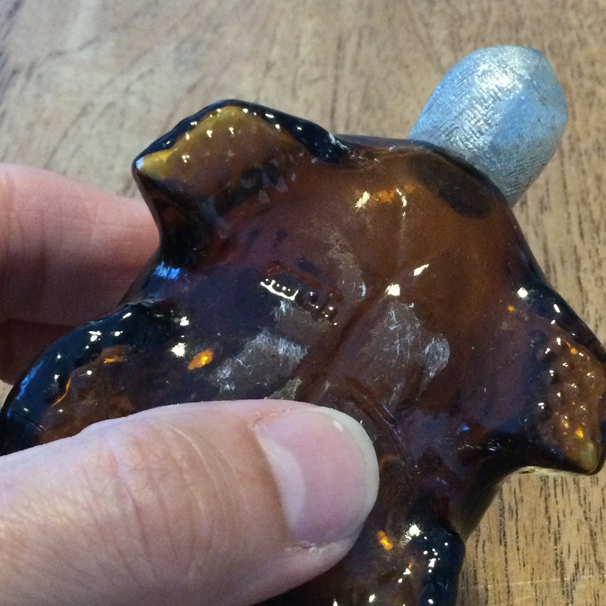 Vintage Avon Tai Winds Turtle shape collectible aftershave bottle. Empty. Retro brown glass.