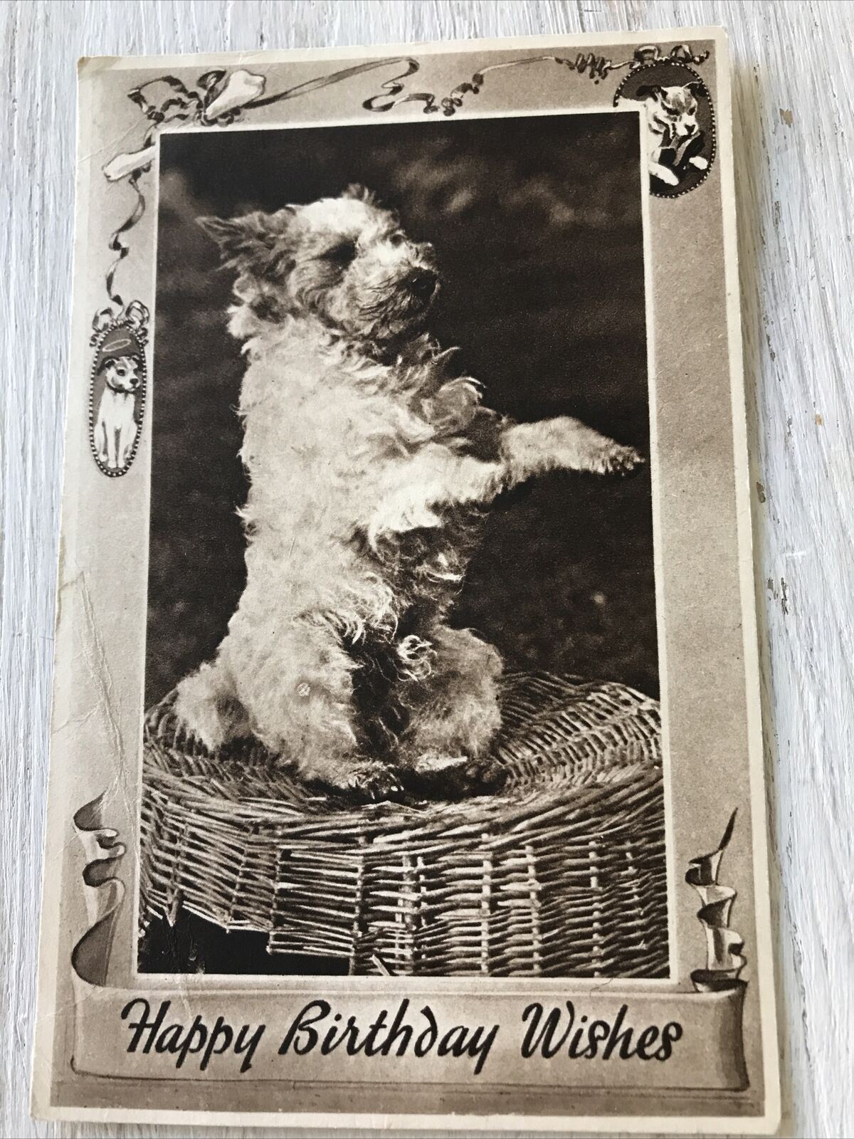 Vintage Birthday Greetings Postcard / Card - Cute Scruffy Dog - With Halo & Naughty Dog Image